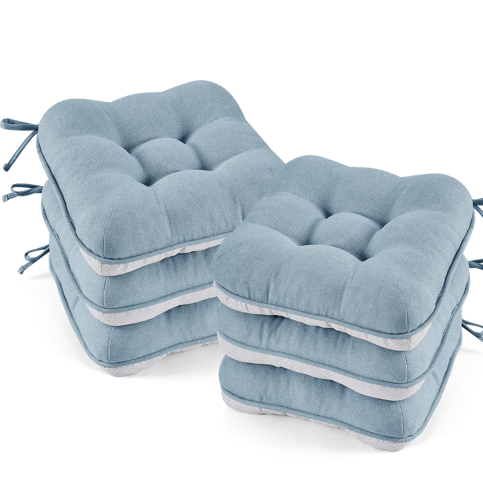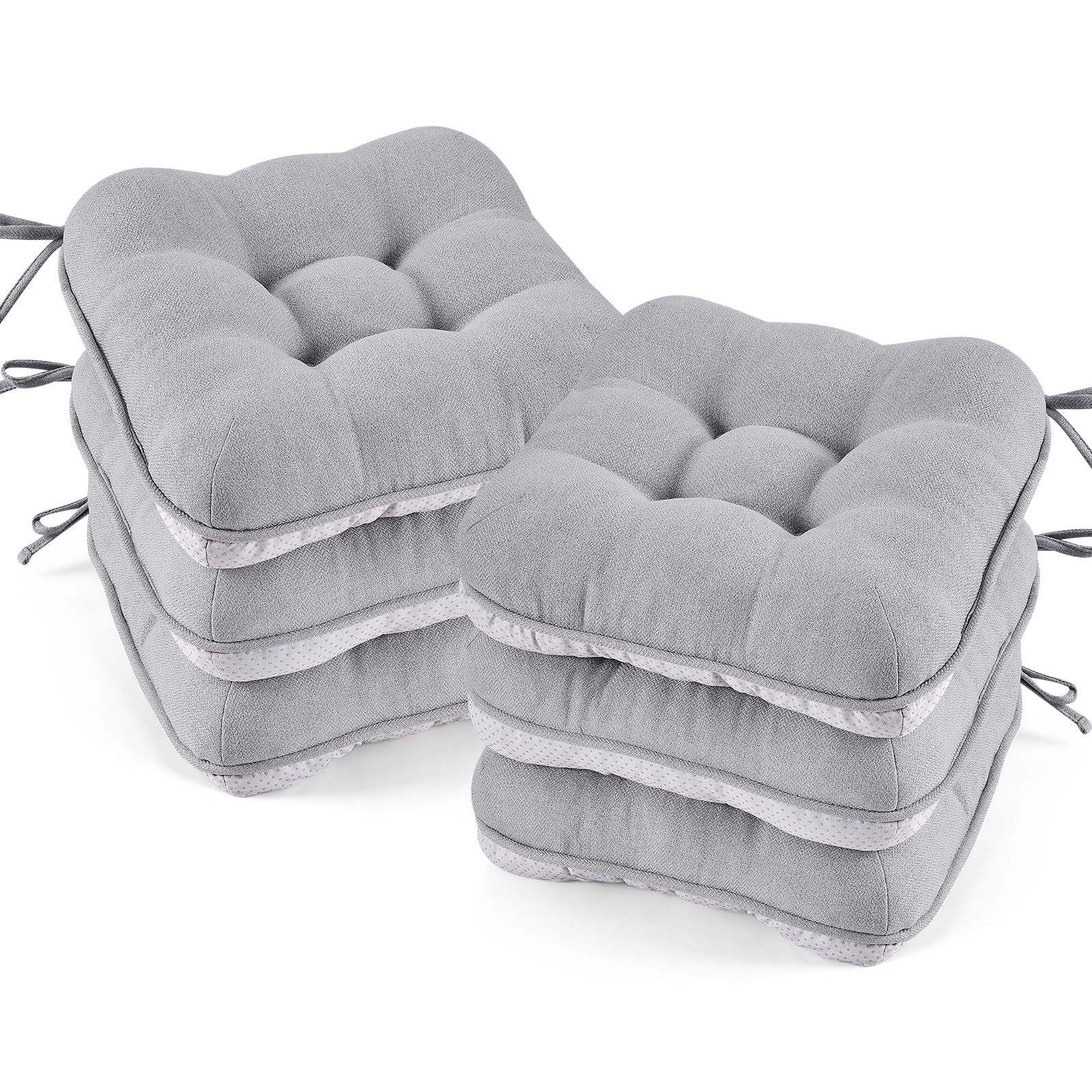 BETU Chair Cushions for Dining Chairs Set of 6,3.5" Thick Kitchen Table Chair Pads with Ties,Non Slip Backing and Covers, Seat Cushion for Dining Room|Kitchen & Dining