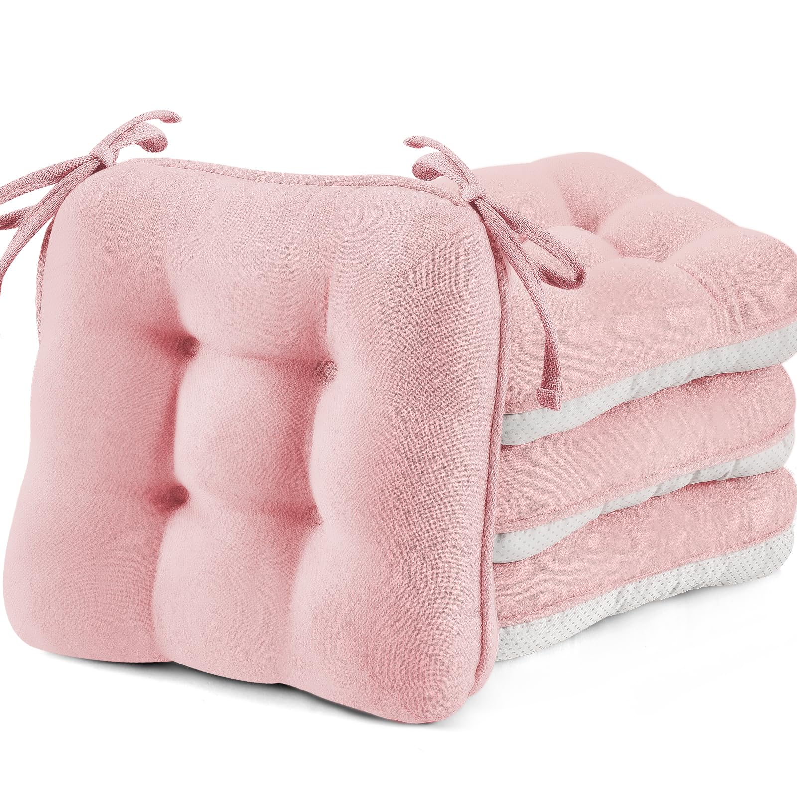 BETU Pink Chair Cushions for Dining Chairs Set of 4,3.5" Thick Kitchen Table Chair Pads with Ties,Non Slip Backing and Covers, Seat Cushion for Dining|Kitchen & Dining