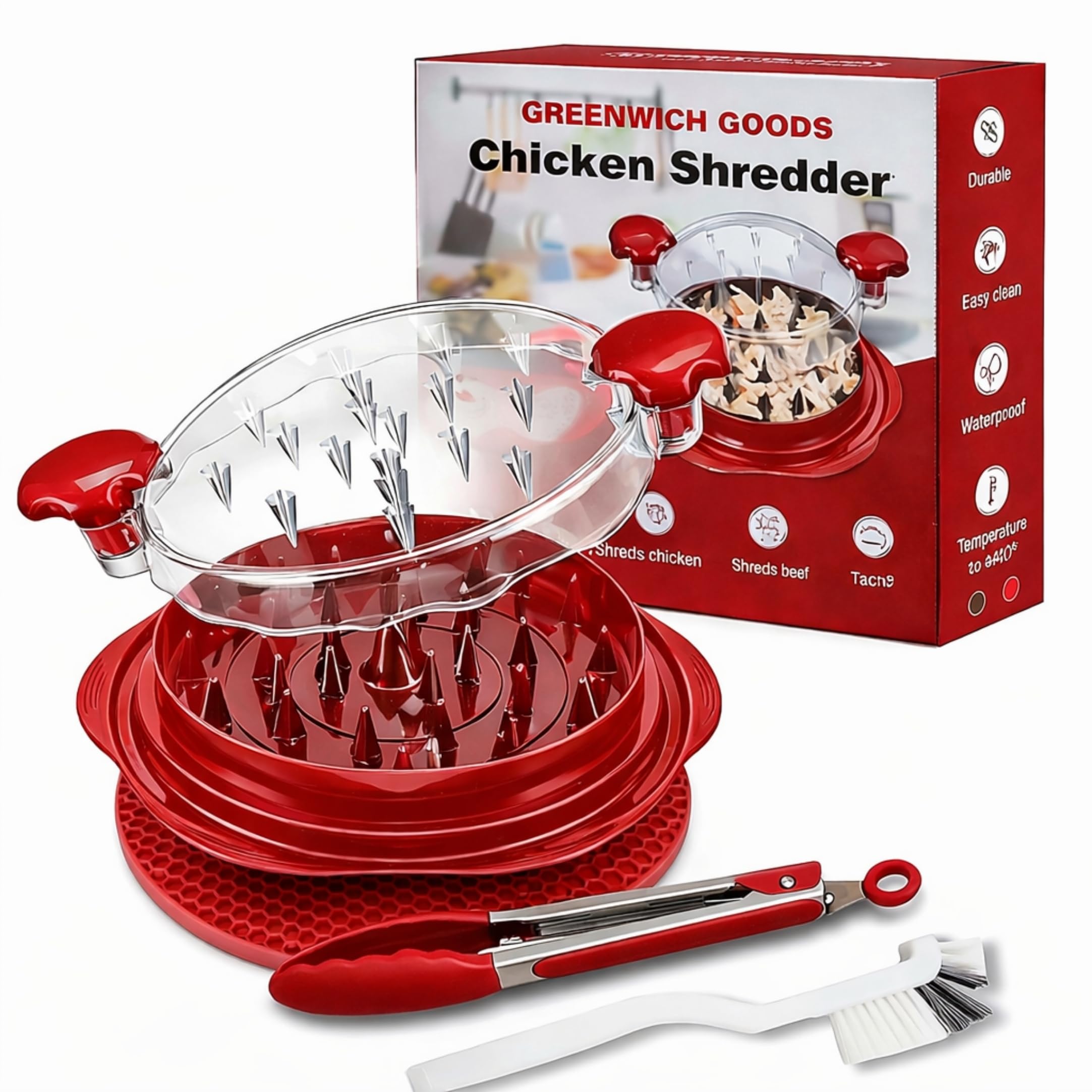 Chicken Shredder Tool Twist Large – Visible Meat Shredder for Chicken Breast with Cleaning Brush & Tong, BPA-Free Non-Slip Base, Ergonomic Handle,|Kitchen & Dining