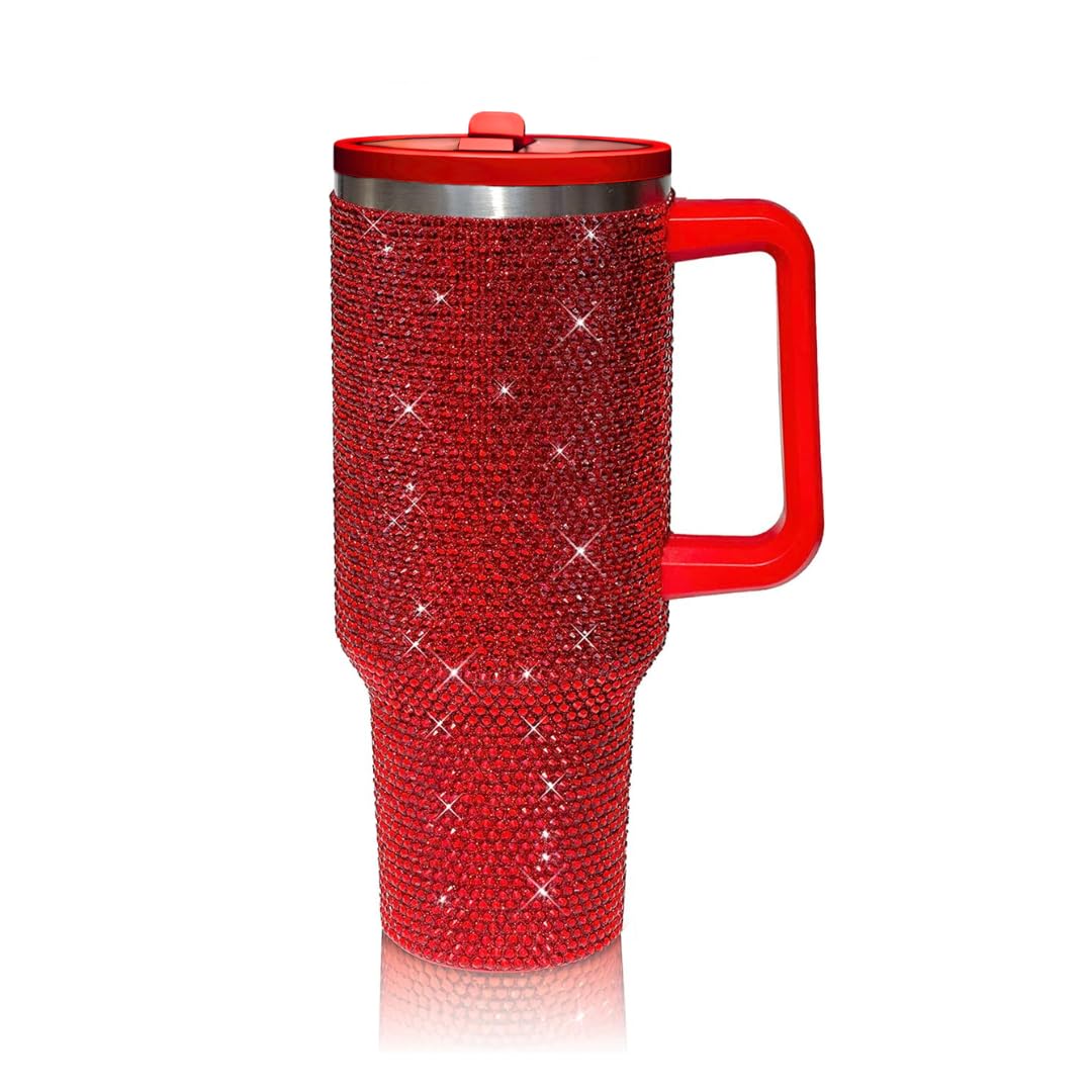 cuteolivia 40 Oz Rhinestone Studded Tumbler with Handle Straw and Lid, Insulated Stainless Steel Double Layer Water Bottle for Women, Reusable Travel|Kitchen & Dining