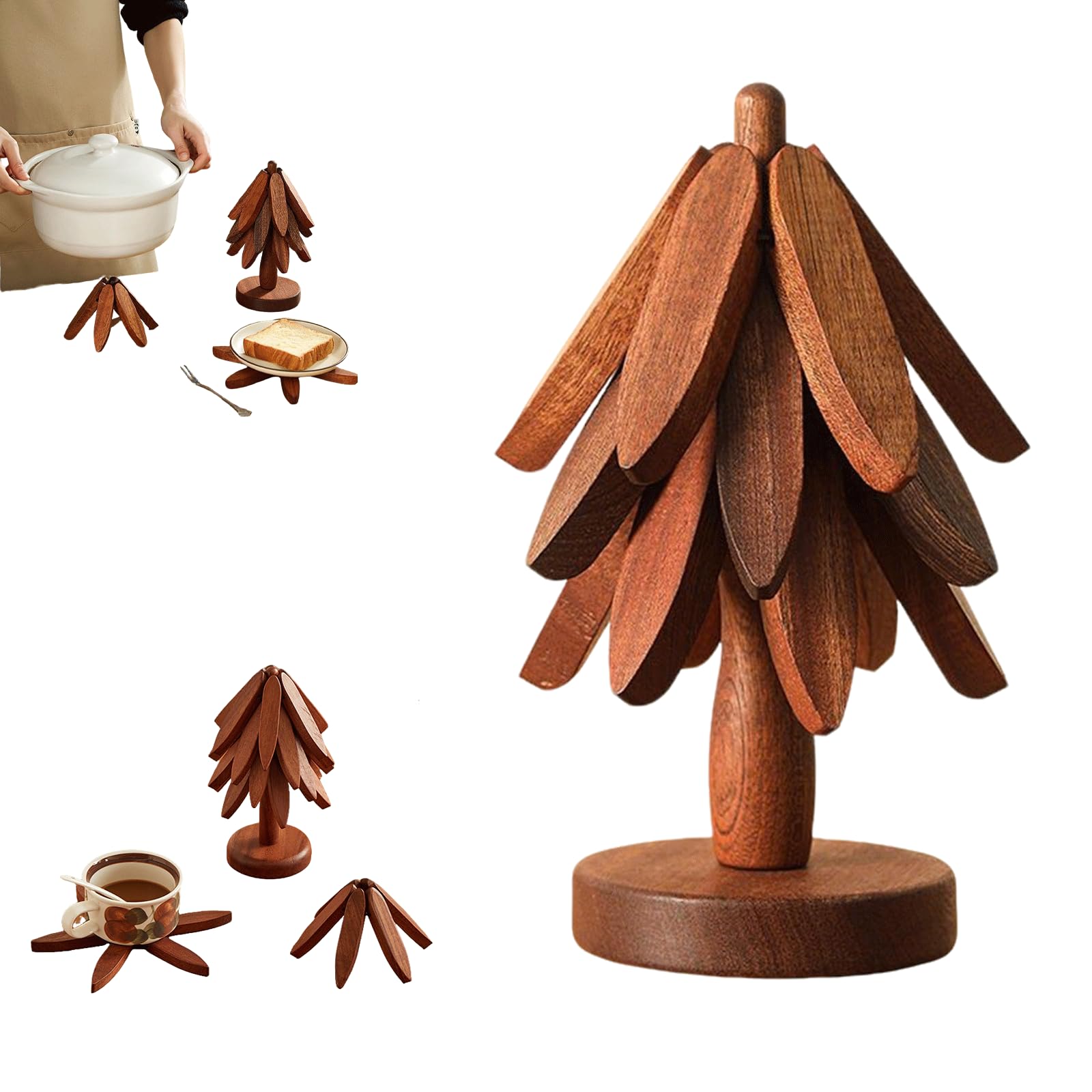 Natural Tree Trivet Set - Natural Foldable Kitchen Trivets, Handmade Wooden Hot Pad Holder for Plates, Pots, Pans, Cup, Kitchen Dining Table|Kitchen & Dining
