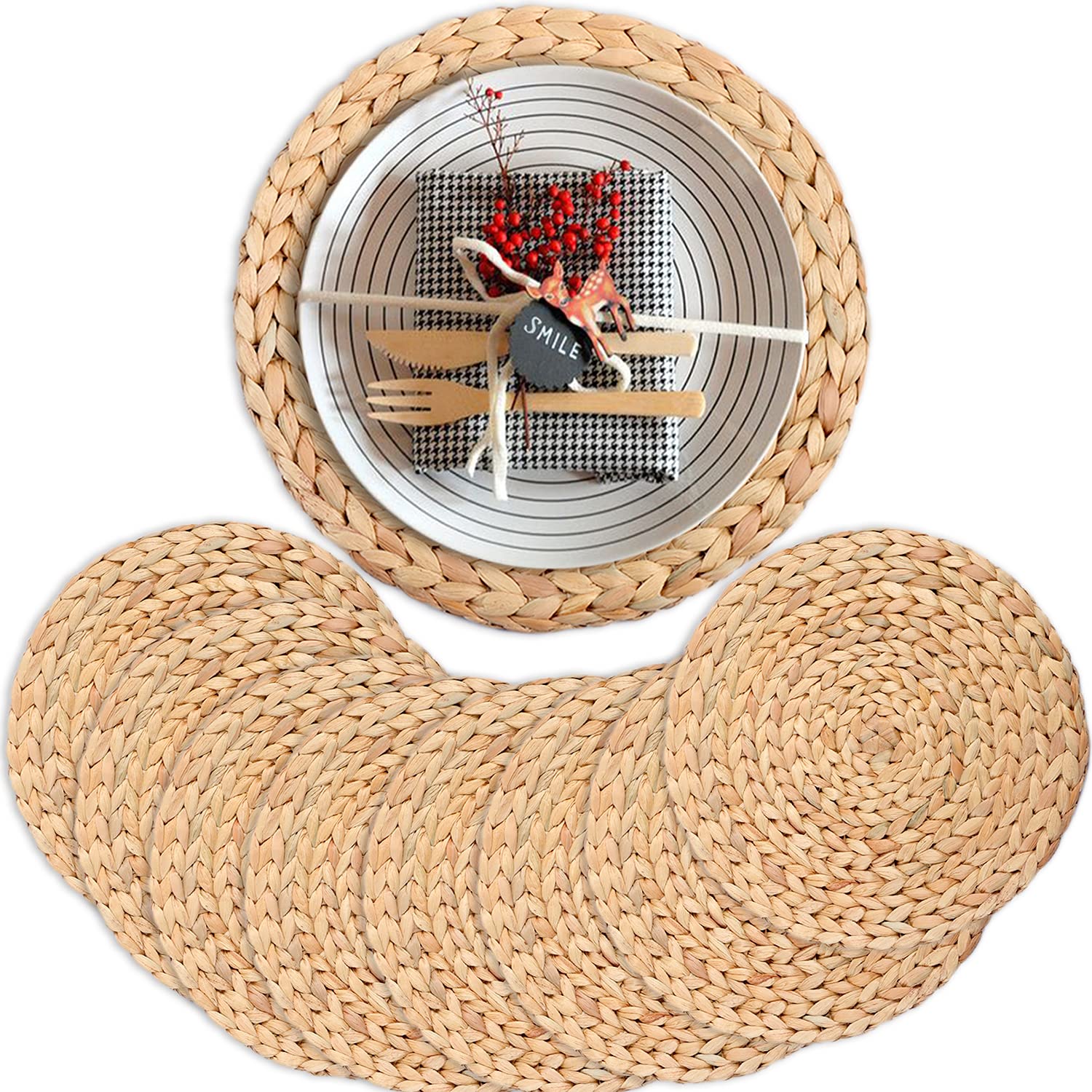 Natural Water Hyacinth Round Placemats, Boho Wicker Placemats, Chargers for Dinner Plates, Home Decor Dining Table, Kitchen Decor, Kitchen Table|Kitchen & Dining