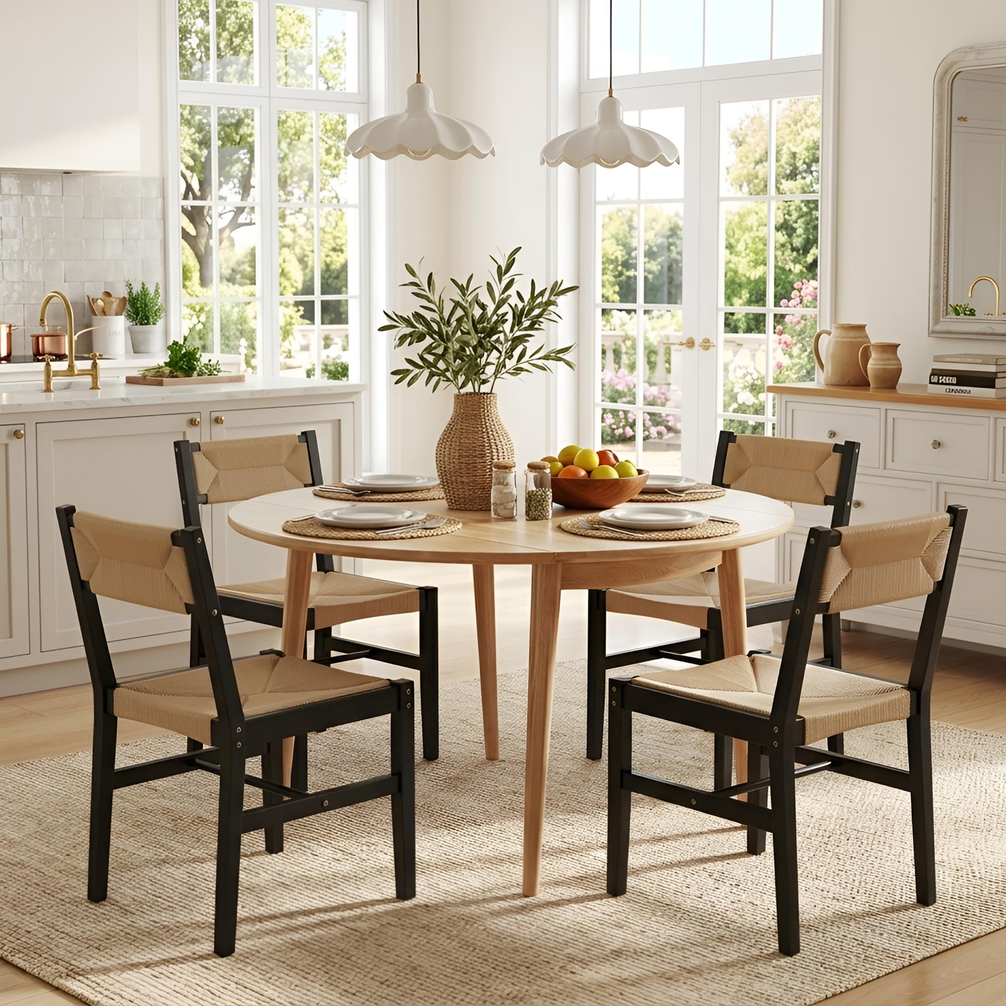 Mid Century Modern Rattan Dining Chairs Set of 4 Black Beechwood Kitchen Chairs Farmhouse Woven Dining Room Chairs Armless Boho Cane Wicker Chair|Kitchen & Dining