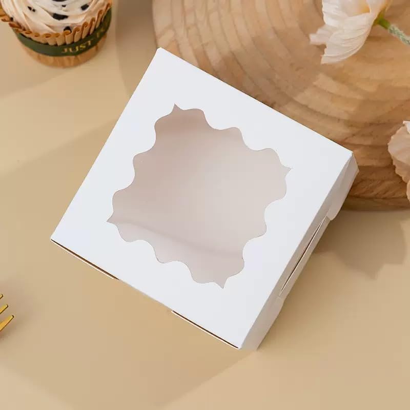 JIYIXhylera 30Pcs (6x6x3 in) Mini Cake Boxes with Display Window for Gift Giving, Bakesale, Cupcakes, Dessert, Cookies, Pie, Macaroons, Donuts, Pastry|Kitchen & Dining