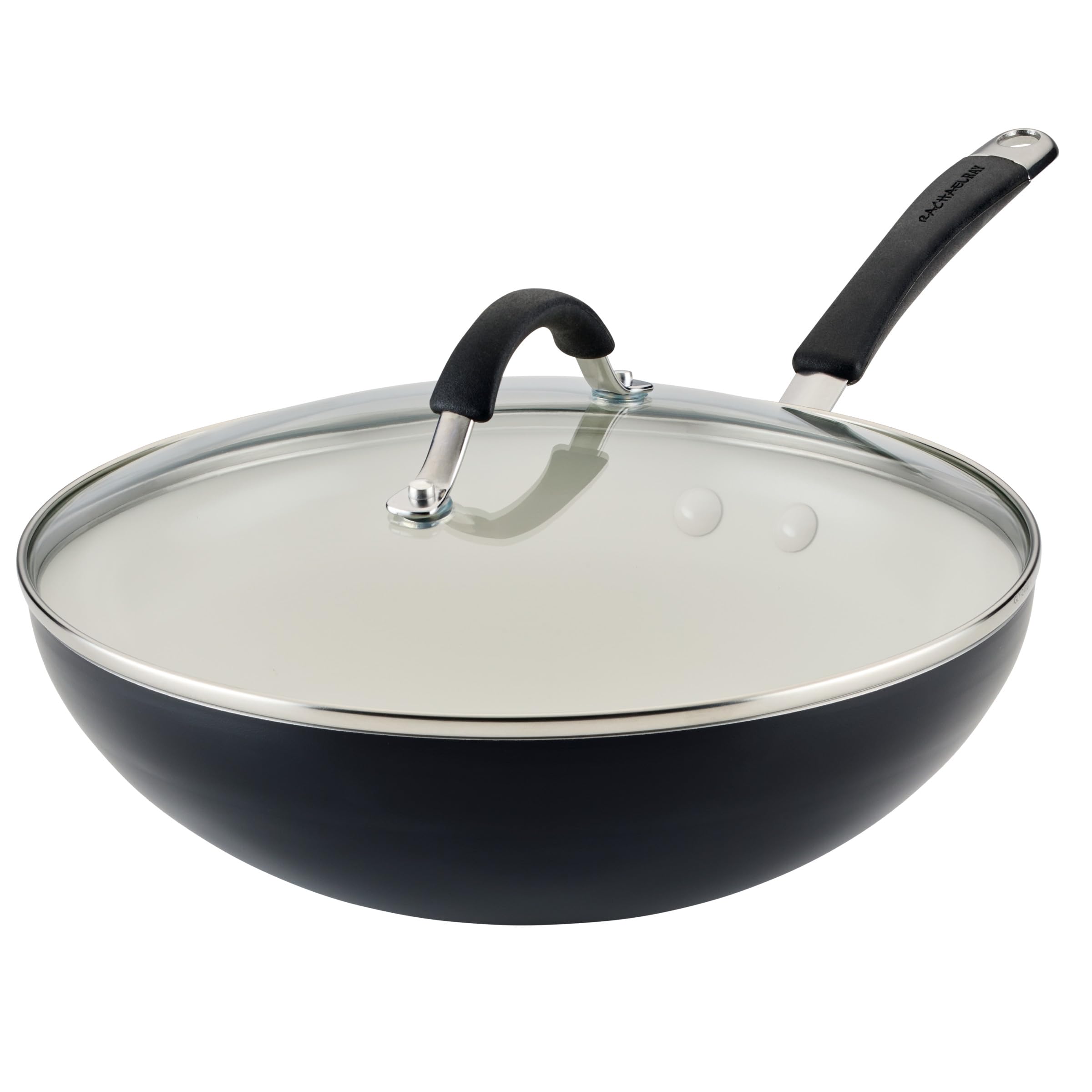 Rachael Ray Cucina Ceramic Nonstick Stir Fry Pan and Lid, 11 Inch Non Stick Wok Pan, Dishwasher Safe - Peppercorn|Kitchen & Dining