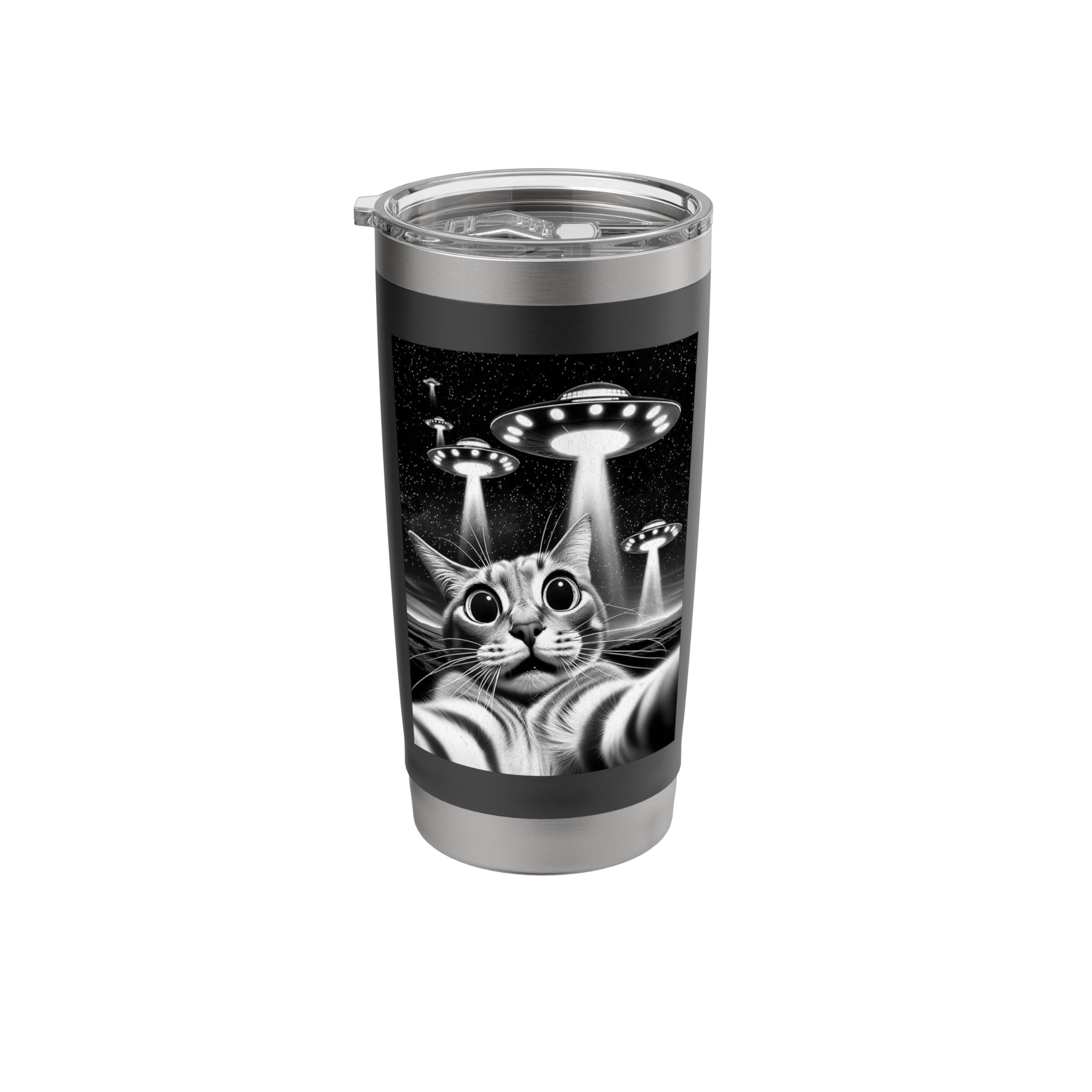 Cat UFO | Funny Invasion Meme Retro Alien Cat UFO Selfie Stainless Steel Insulated Tumbler|Kitchen & Dining