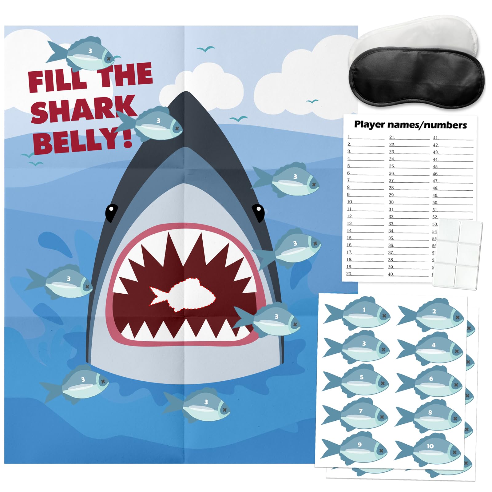 PINGAMOO Shark Party Games - Pin The Fish on The Shark, Birthday Activities Supplies Favors for Classroom, Adults, Boys, Girls - 20 Guests|Kitchen & Dining