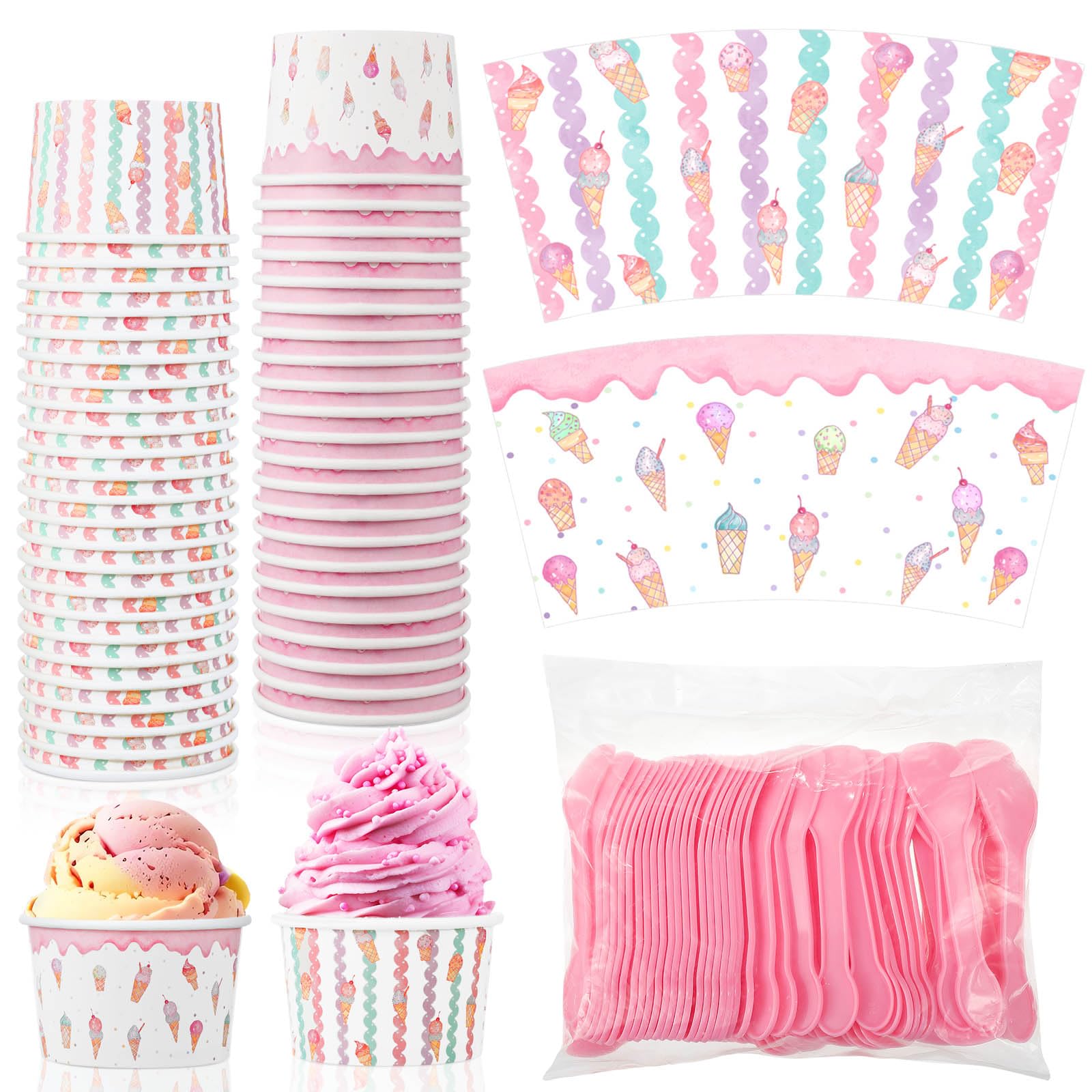 Gerrii 100 Set Ice Cream Cups with Spoons 8oz Ice Cream Bar Supplies Colorful Disposable Dessert Cups Sundae Containers Dessert Bowl for Birthday|Kitchen & Dining