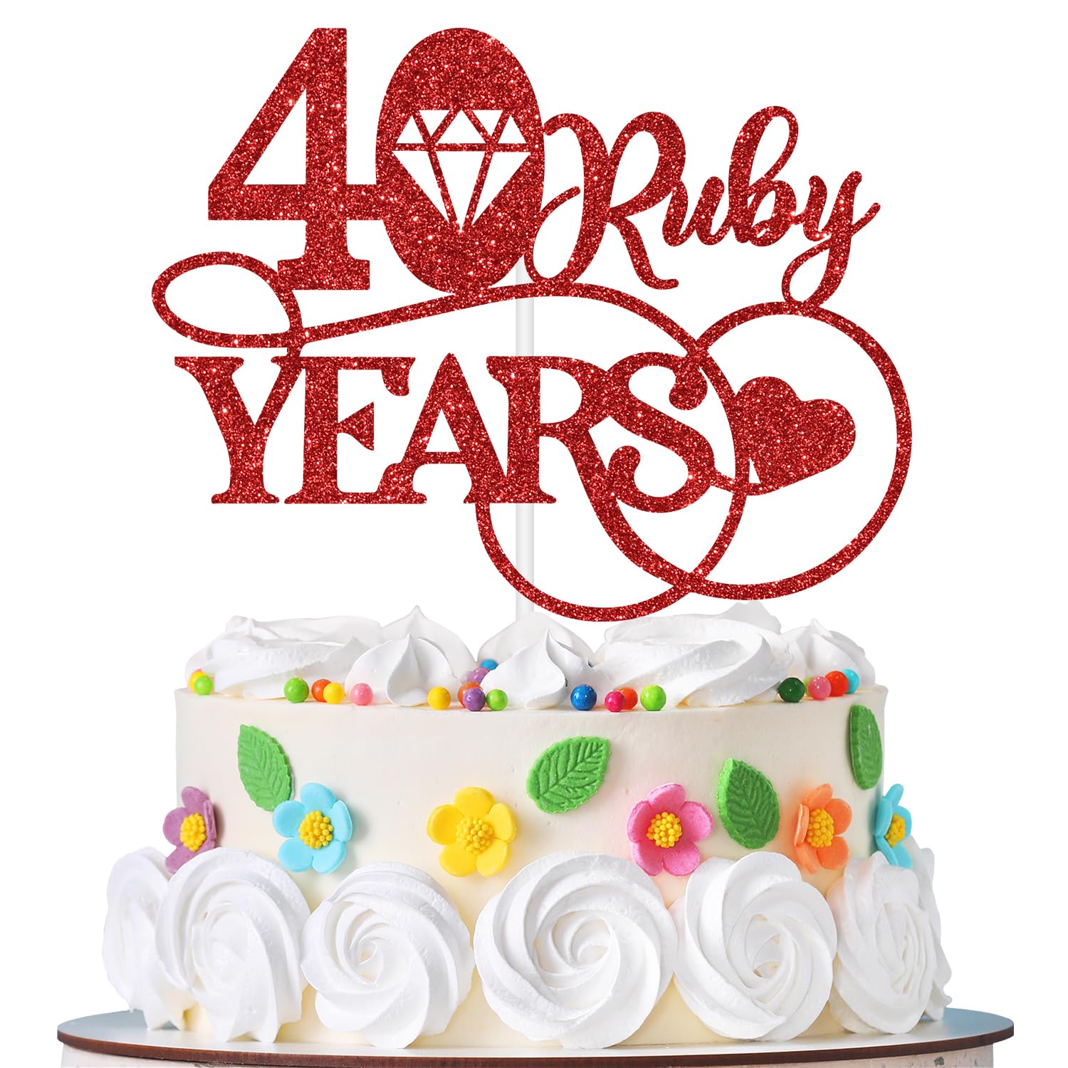 Happy 40th Wedding Anniversary Cake Topper, 40 Ruby Years, We Still Do, 40th Wedding Anniversary Party Decorations Supplies Gift Red Glitter|Kitchen & Dining