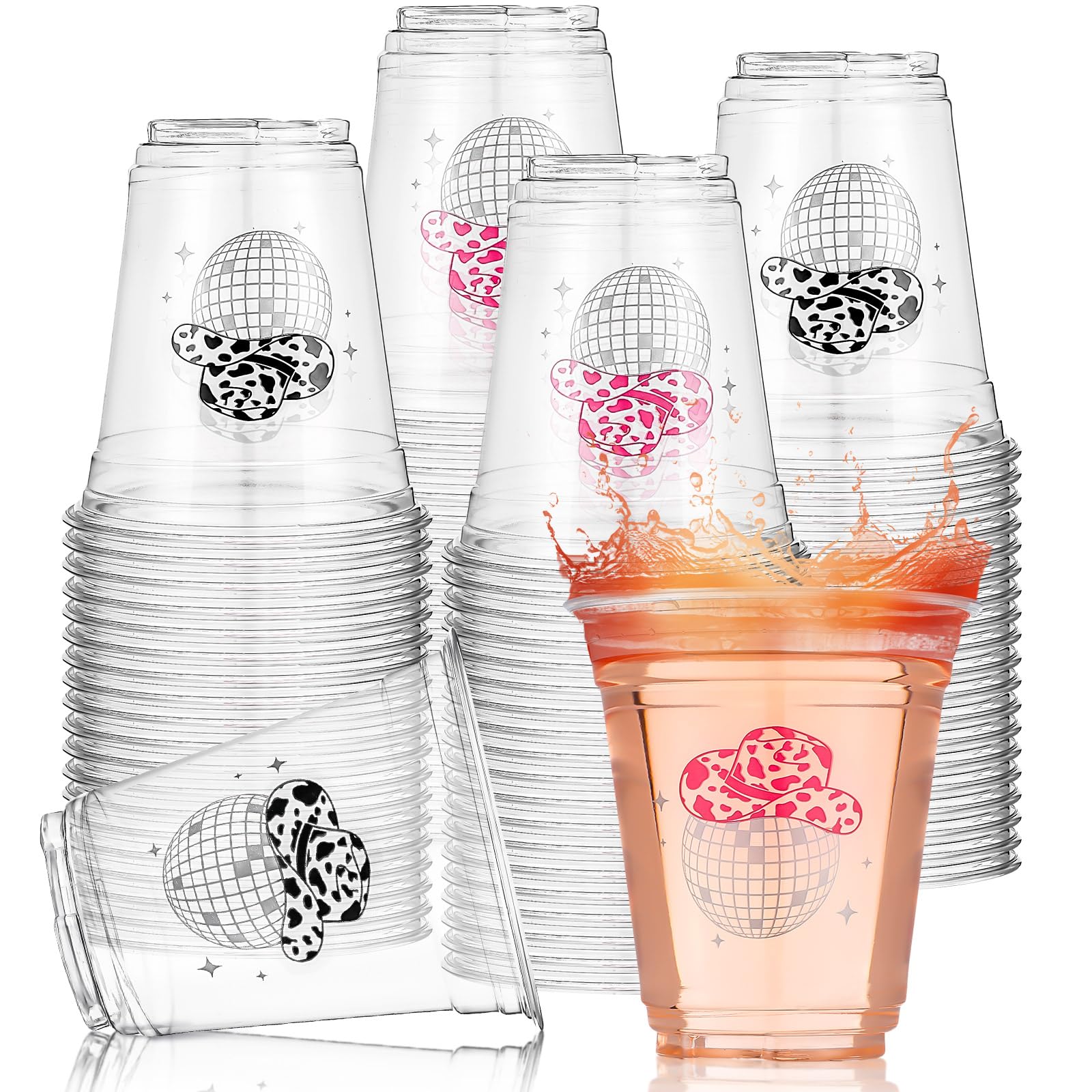 Sliner 100 Pcs Black and Pink Disco Cowgirl Plastic Cups Bachelorette Party Decorations 12 oz Disposable Clear Disco Ball Cups for Bachelorette|Kitchen & Dining