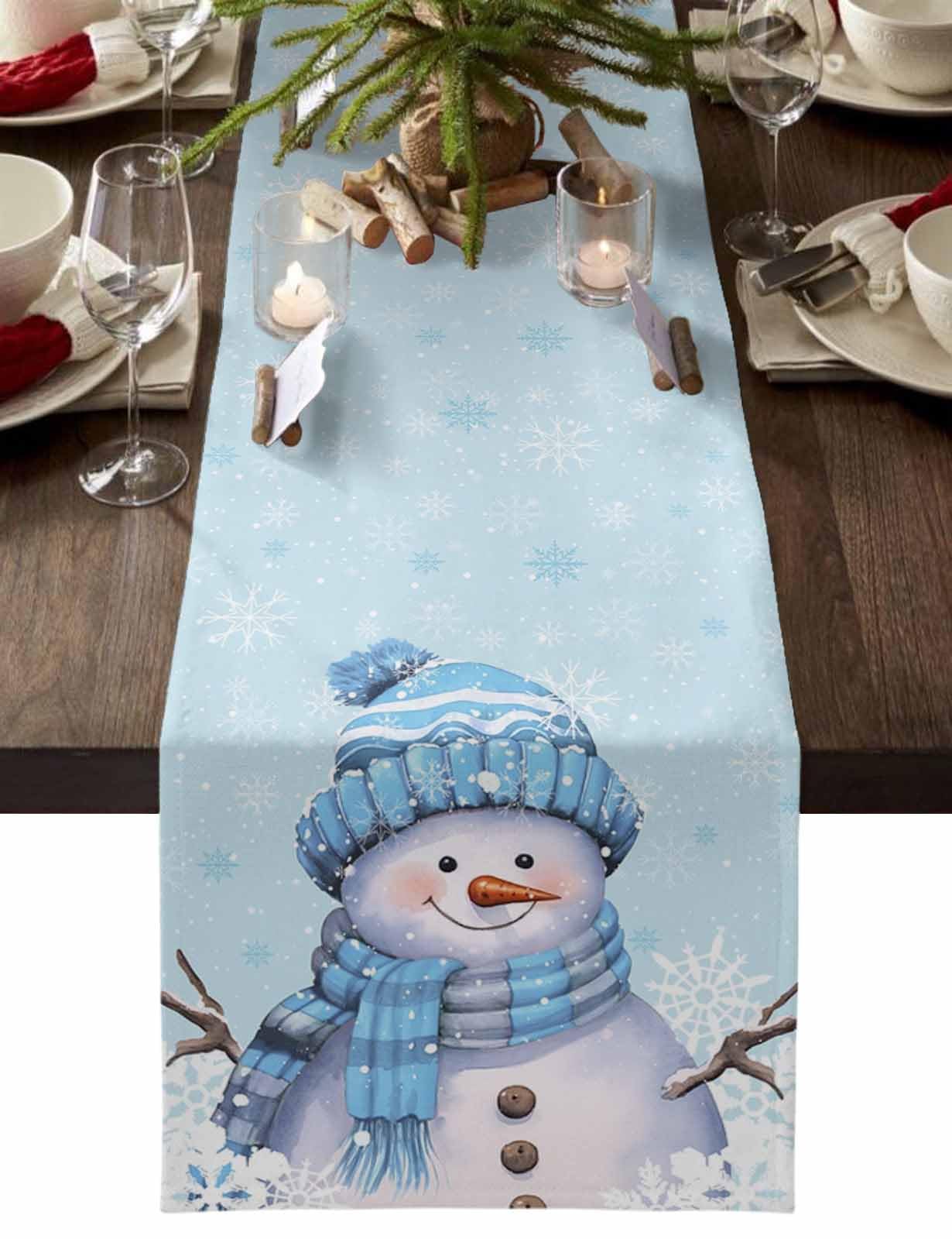 Christmas Snowman Light Blue Table Runner Dresser Scarf Snowman with Blue Cap Xmas Snow 13 x 36 Inch Table Runners Non-Slip Heat Resistant Kitchen|Kitchen & Dining