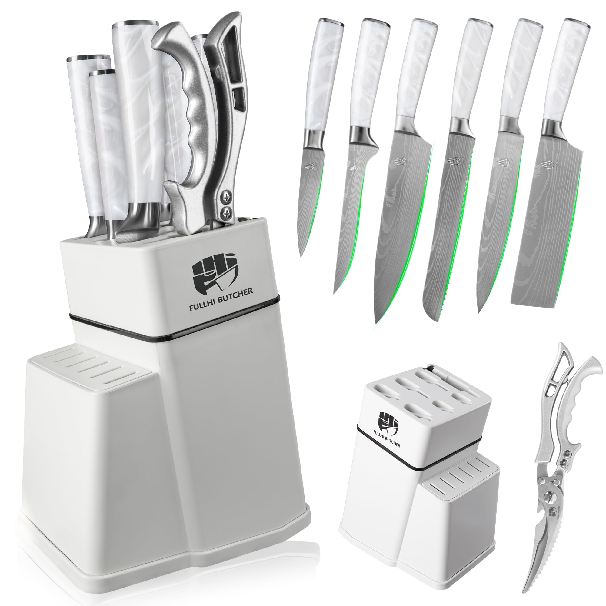 FULLHI 8pcs block Knife Set,chef's Knves Set with Block and Sharpener, Kitchen Knife Set,Multi-colour Handle, Gifts for Men Women|Kitchen & Dining