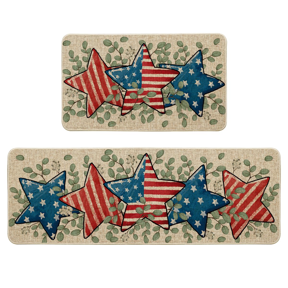 Artoid Mode American Flag Stars Eucalyptus Patriotic 4th of July Kitchen Mats Set of 2, Memorial Day Home Decor Kitchen Rugs for Floor - 17x29 and|Kitchen & Dining