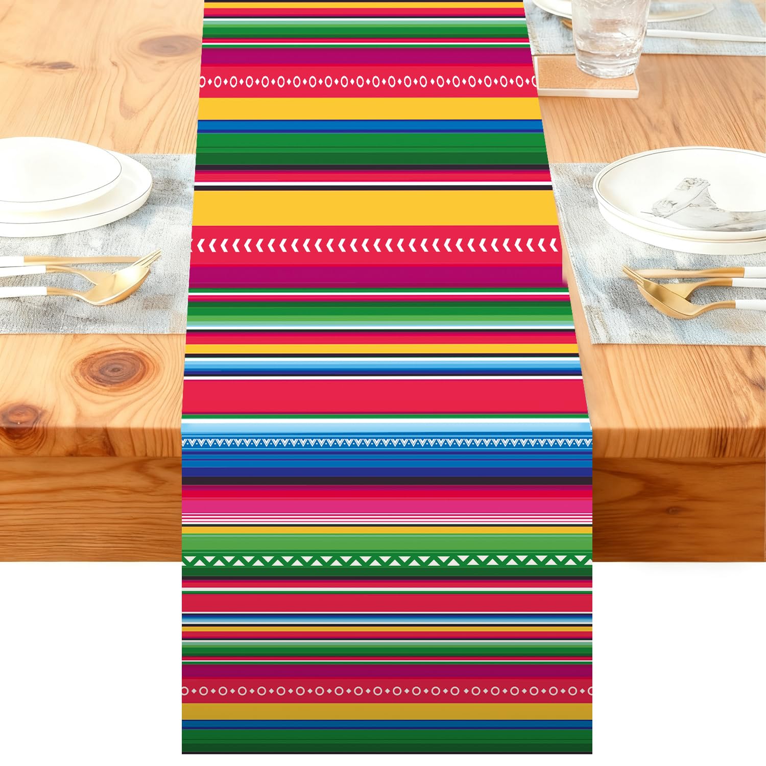 72 x 13 Inch Fiesta Table Runner – Colorful Serape Stripe Table Decoration for Cinco de Mayo, Taco Parties, Mexican-Themed Events, Kitchen and Dining|Kitchen & Dining