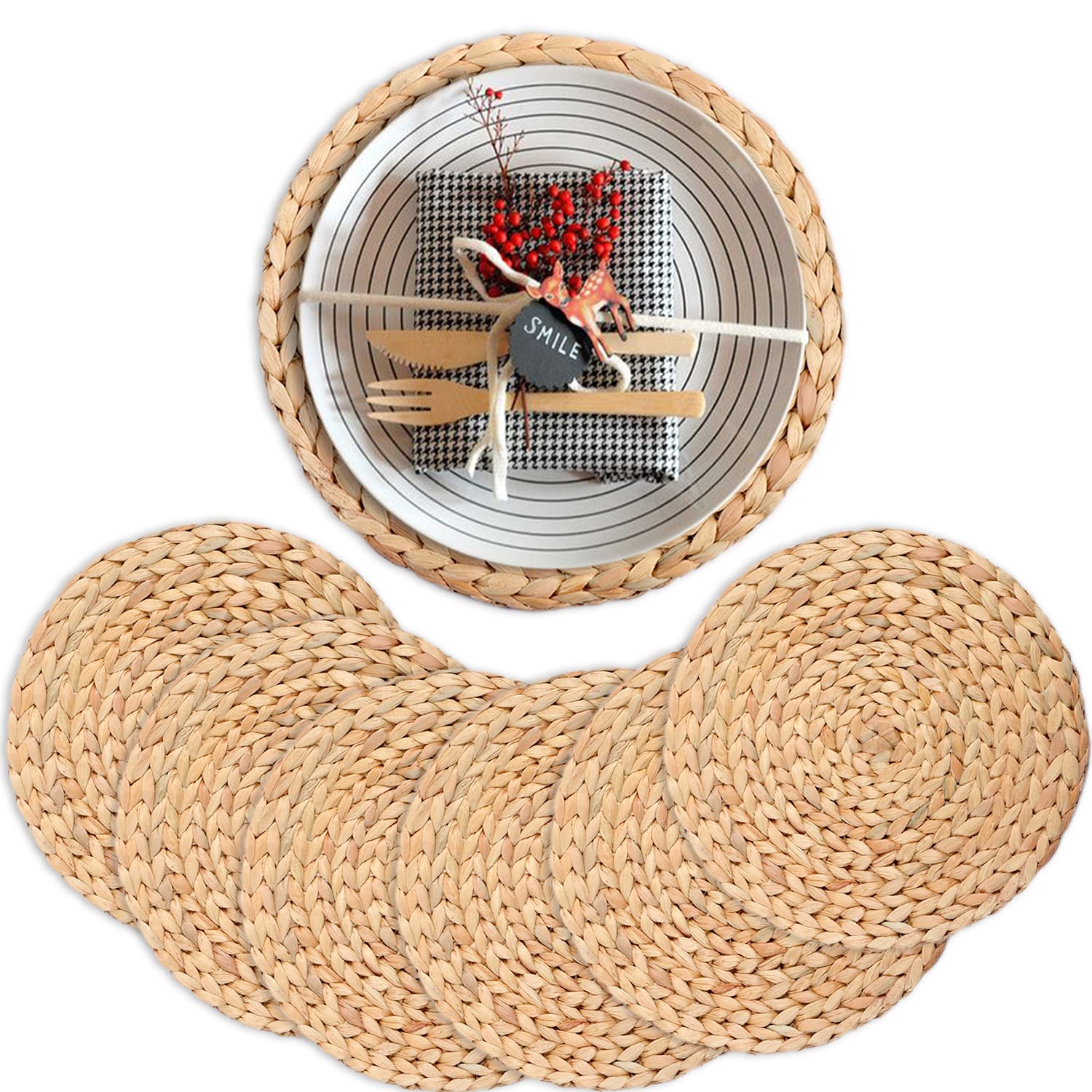 Natural Water Hyacinth Round Placemats, Boho Wicker Placemats, Chargers for Dinner Plates, Home Decor Dining Table, Kitchen Decor, Kitchen Table|Kitchen & Dining