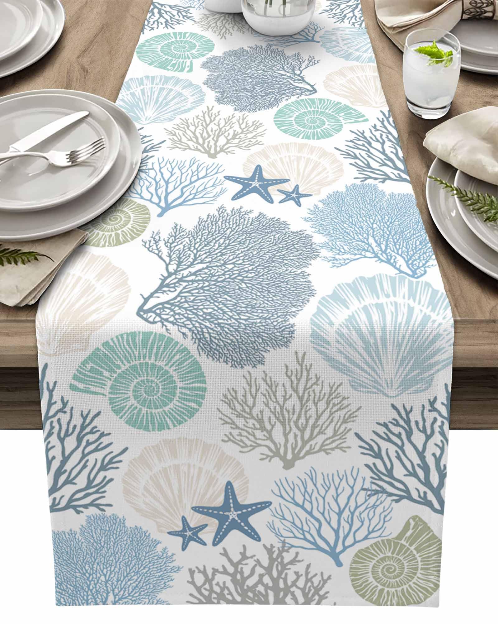 Nautical Coastal Table Runners Ocean Beach Coral Table Runners for Dining Room Starfish Blue Teal Dinner Runner Kitchen Indoor Outdoor Patio Party|Kitchen & Dining