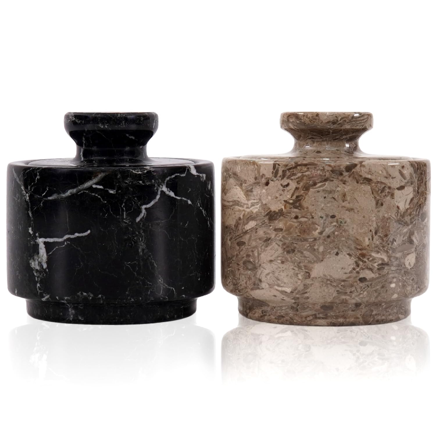 MARBLOUS KRAFTS Marble Salt Cellar 3" Verona Stone Salt Container for Valentine Gifts, Ideal Set of 2 Coffee Storage Container Kitchen Countertop,|Kitchen & Dining