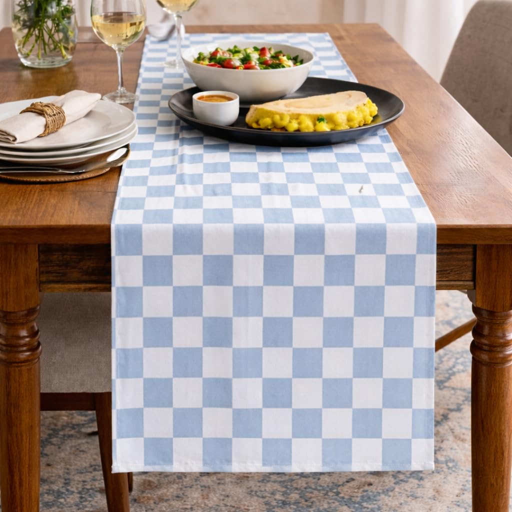 Folkulture Summer Table Runner 108 inches Long, Blue Checkered Table Runner for Coastal Decor for Home - 100% Cotton, Perfect for Indoor & Outdoor,|Kitchen & Dining