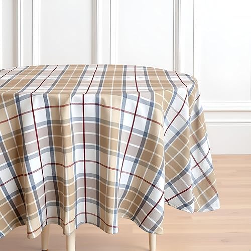 Lintex Spring Holiday Fabric Tablecloth, Grey and Taupe Cabin Plaid 100% Cotton Woven Fabric, Country Rustic Style, 60 x 84 Inch Oval Table Cover|Kitchen & Dining