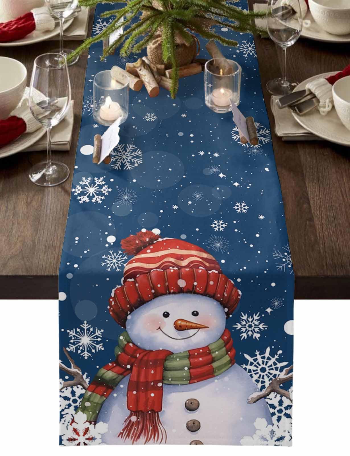 Christmas Snowman Red Table Runner Dresser Scarf Snowman with Red Cap Xmas Snowflakes 13 x 120 Inch Table Runners Non-Slip Heat Resistant Kitchen|Kitchen & Dining