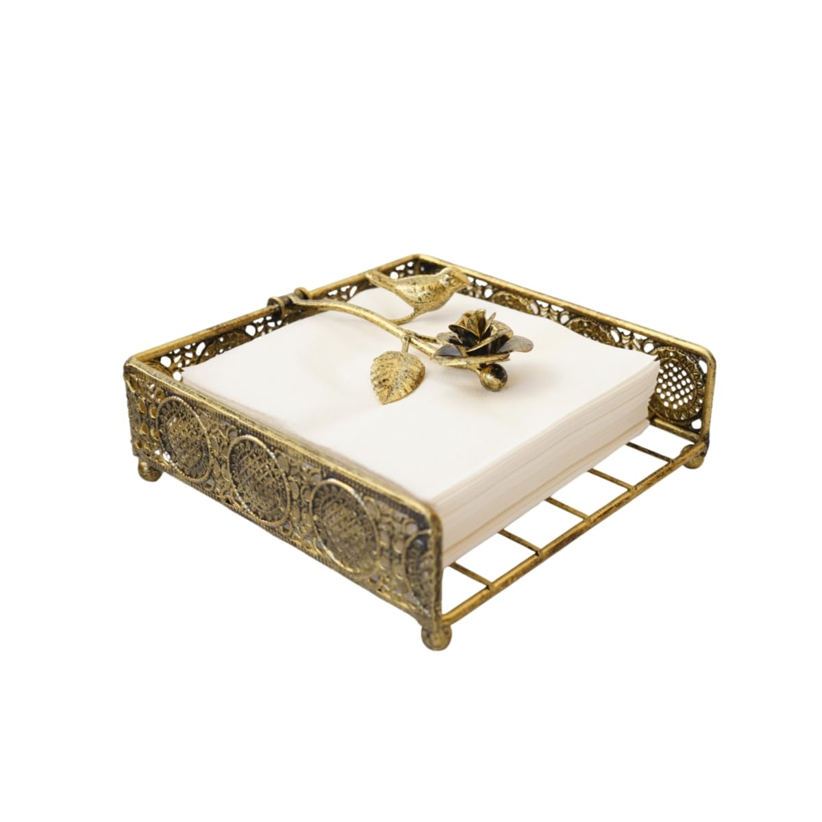 Flat Antique Brass Painting Metal Napkin Holder with Vintage and Classic Bird Design For Kitchen and Dinner Table|Kitchen & Dining