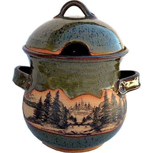 ALWAYS AZUL POTTERY Mountain Scene Soup Tureen in Seamist Glaze - Handmade Ceramic Pottery Bowl - Handcrafted Polished Stoneware - Unique & Stylish|Kitchen & Dining