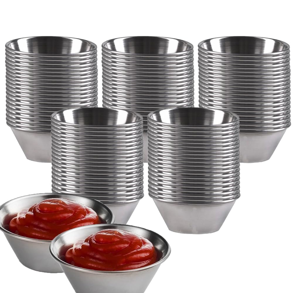 Kitchen Kemistry Small Sauce Cups- 1.5oz, Stainless Steel Ramekin Dipping Sauce Cup, Commercial Grade Individual Round Condiment cups, Pack of 100|Kitchen & Dining