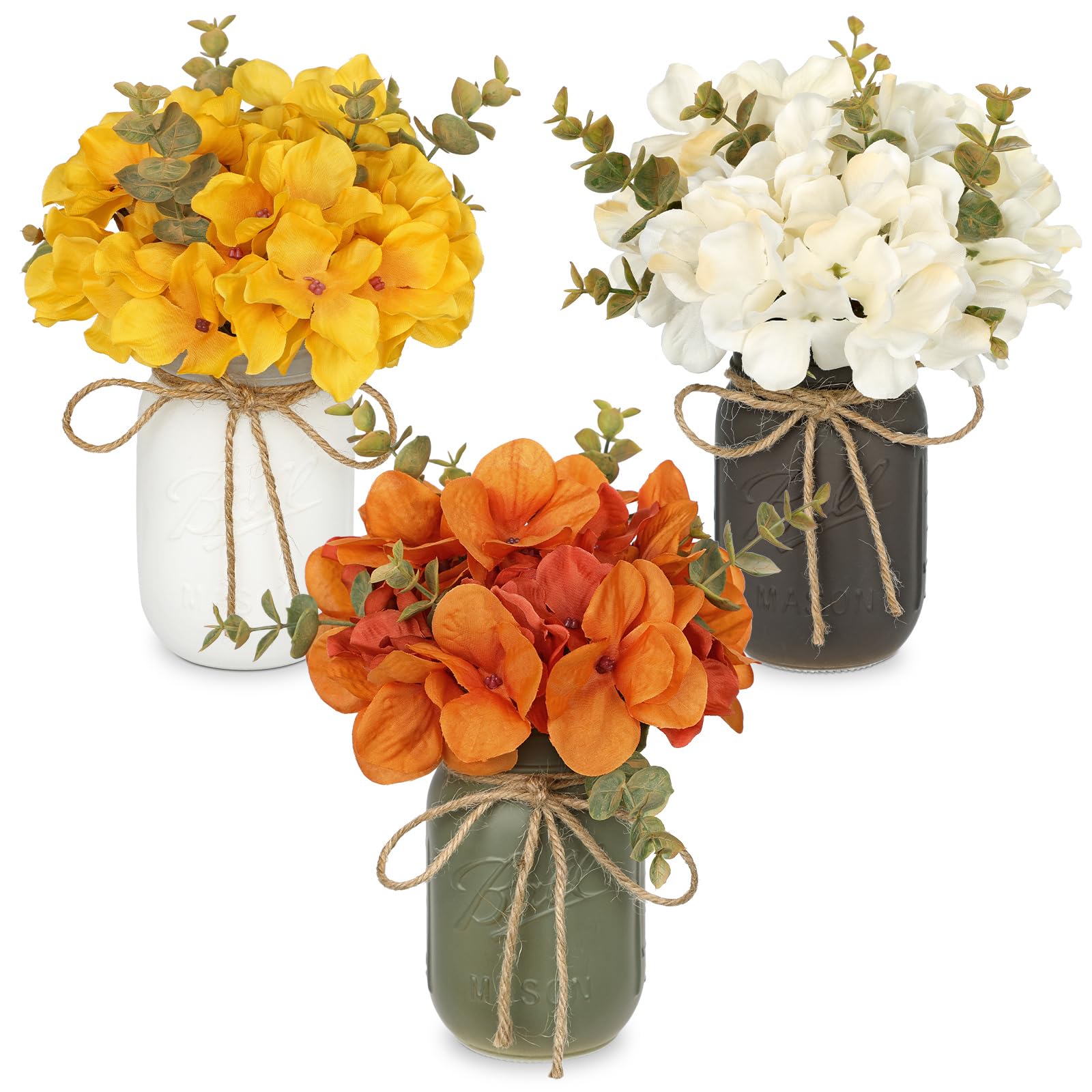 Mason Jar Centerpiece Rustic Autumn Floral Centerpiece for Table Farmhouse Decor Fall Artificial Hydrangea Flowers Thanksgiving Tiered Tray Decoration|Kitchen & Dining