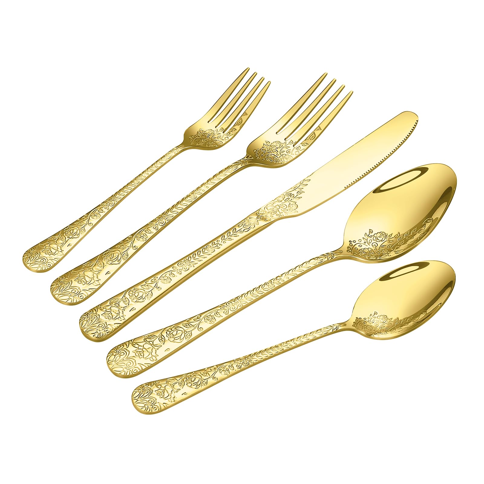 Floral 20 Pcs Gold Silverware Set for 4, Food Grade Stainless Steel Flatware Set with Rose Flower Embossed Design, Eating Utensils Sets Include Fork/|Kitchen & Dining