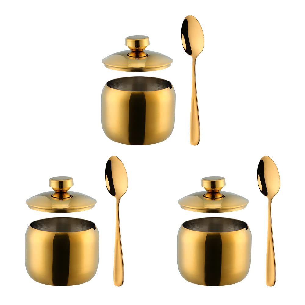 TUPMFG 3-Piece Seasoning Box with Spoon and Lid 304 Stainless Steel Condiment Canisters Pots Seasoning Jars for Spice Salt Sugar-Gold|Kitchen & Dining