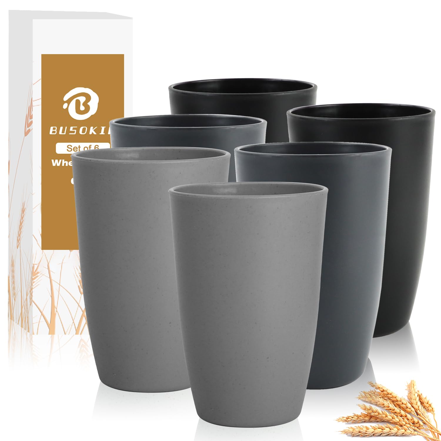 BUSOKIP Wheat Straw Cups 20 OZ Set of 6, Unbreakable Drinking Cup Reusable, Alternative to Plastic Cups Reusable, Kitchen Water Tumblers Dishwasher|Kitchen & Dining