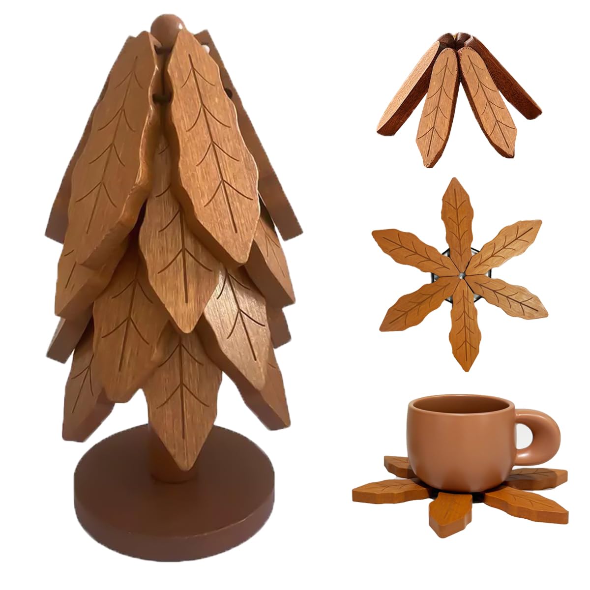 UBABER Premium Wooden Trivets, Kitchen Decor Tree Trivet for Pans & Plates & Cups, Dining-Table Pine Tree Decoration, Eco-Friendly & Easy Clean &|Kitchen & Dining