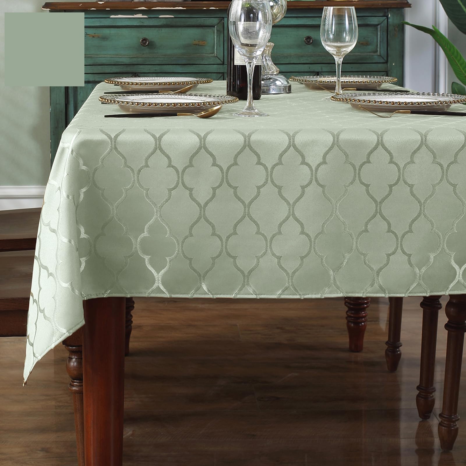 SASTYBALE Jacquard Sage Green Tablecloth, Flower Patterns Table Cloth Spill Proof Wrinkle Resistant Table Cover for Kitchen Dining Tabletop Decoration|Kitchen & Dining