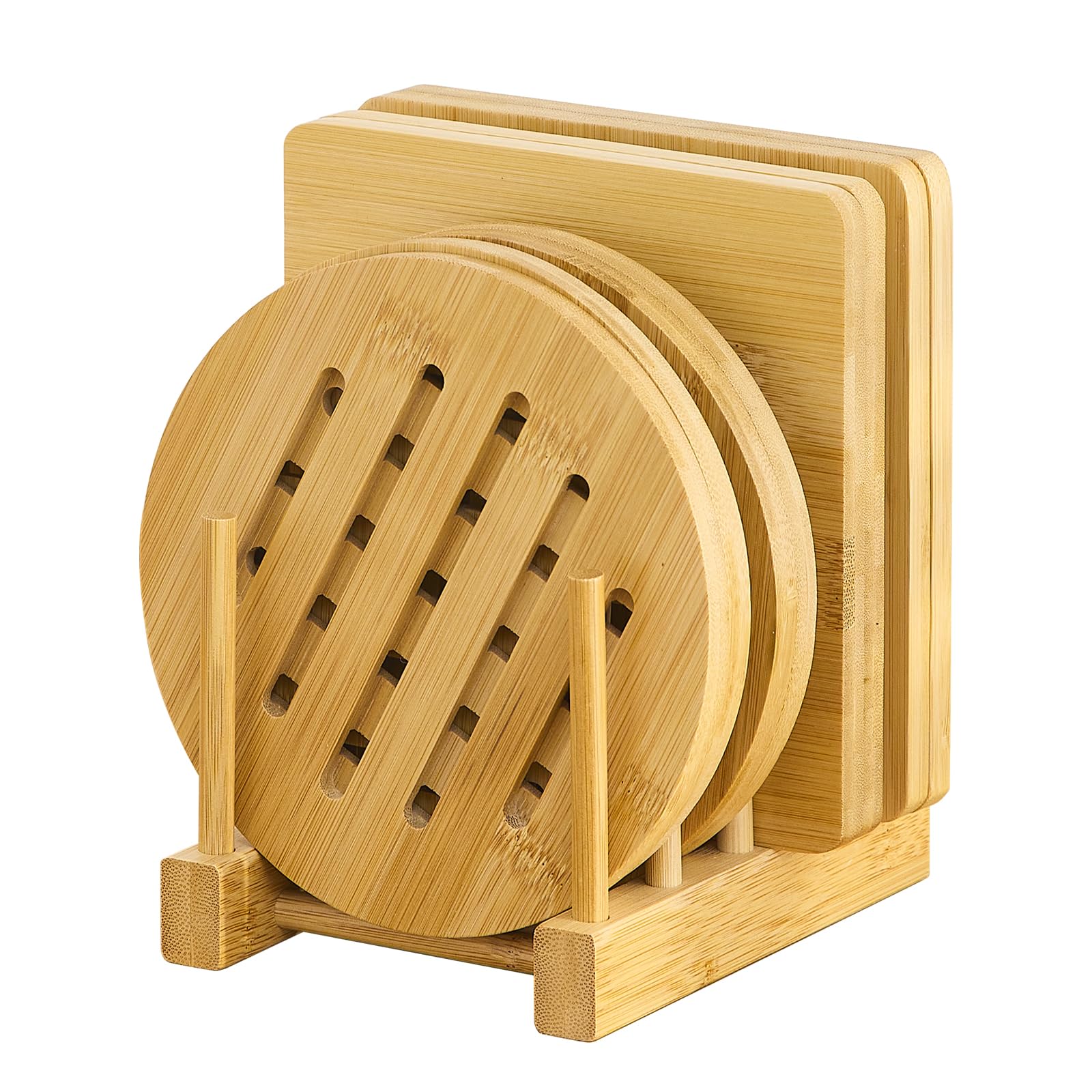 GHWIE Bamboo Trivet with Stand - Heat Resistant Pot Holders for Kitchen, Multi-Purpose Pads, Plate Mats, Large Stove Mat - Air Fryer Accessories and|Kitchen & Dining