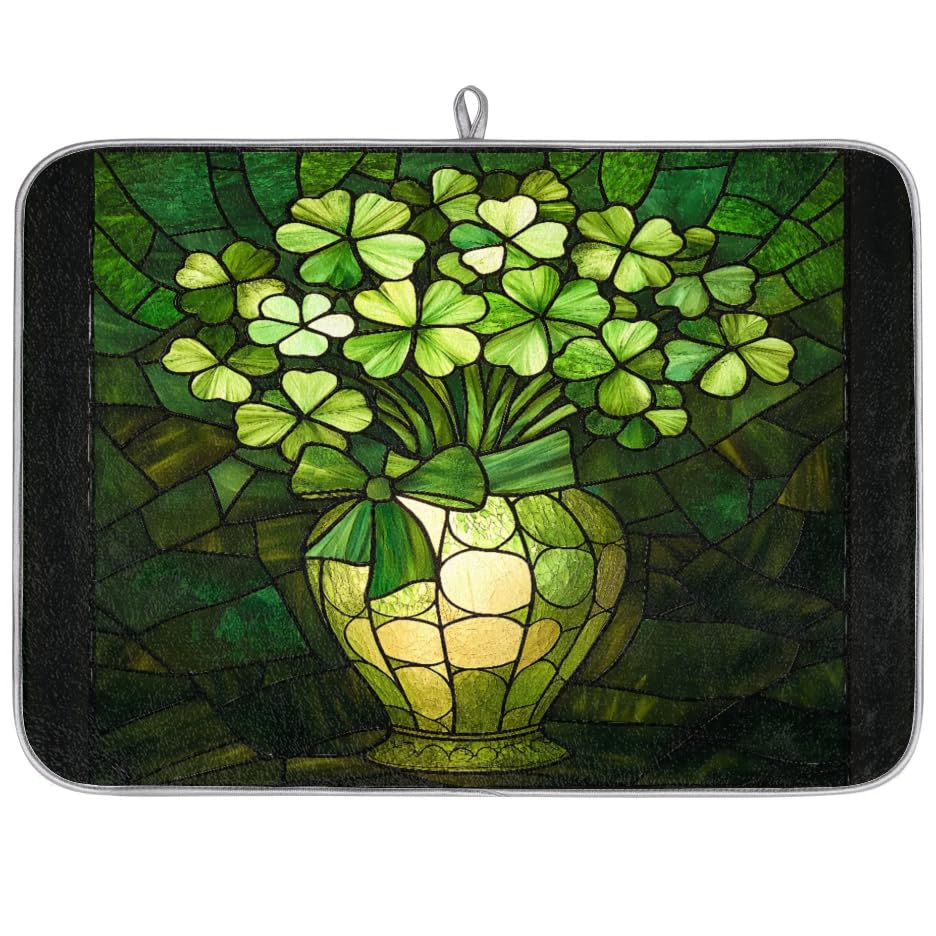 Dish Drying Mat, St. Patrick's Day Shamrock Glass Painting Drying Mat Absorbent Reversible Washable Dish Drainer Mats Heat Resistant Dish Drying Pad|Kitchen & Dining
