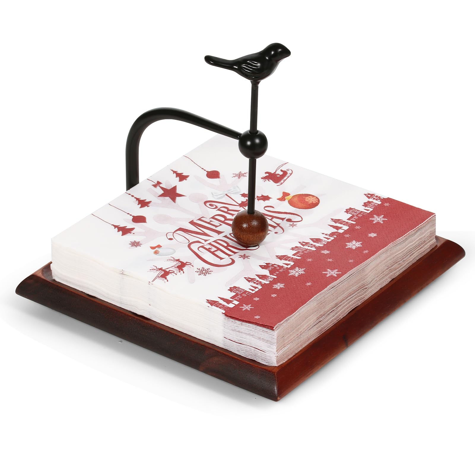 Square Napkin Holder for Table with Acacia Wood Base & Weighted Arm, Fits Most Napkins and Paper Towels, Multi-Use in Kitchen, Restaurant, Hotel, Cafe|Kitchen & Dining