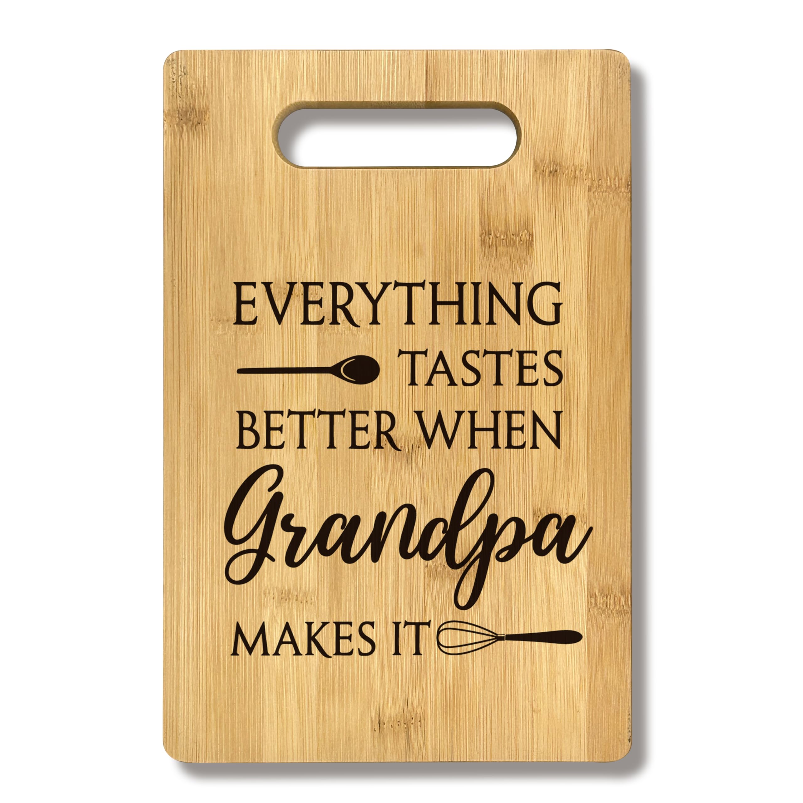 FONDCANYON Grandpa Gift - Everything Tastes Better When Grandpa Makes It - Bamboo Cutting Board Kitchen Decor for Papa's Birthday, Christmas From|Kitchen & Dining