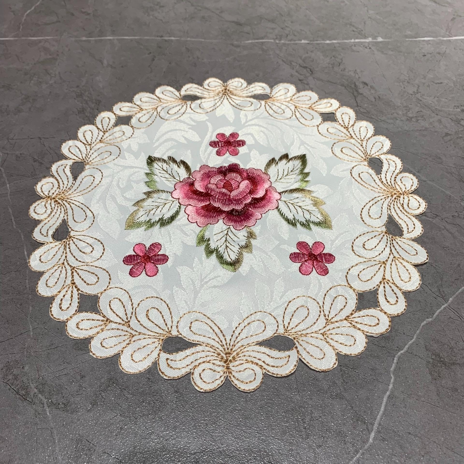 Doilies for Tables,4Pcs European Style Pastoral Placemats Polyester Fabric Decorative Round Table Embroidered Coasters Red 30x30cm|Kitchen & Dining