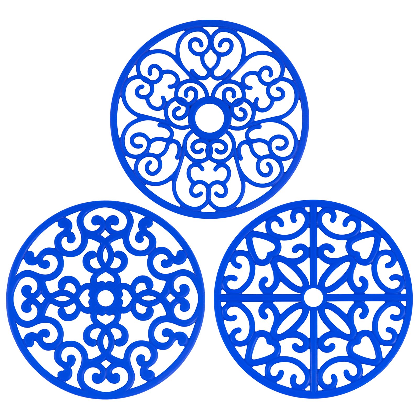CHEFBEE 3PCS Silicone Trivet Mat - Flexible Non-Slip Heat Resistant Modern Kitchen Teapot Trivets Set for Hot Dishes, Table, Countertop Blue|Kitchen & Dining