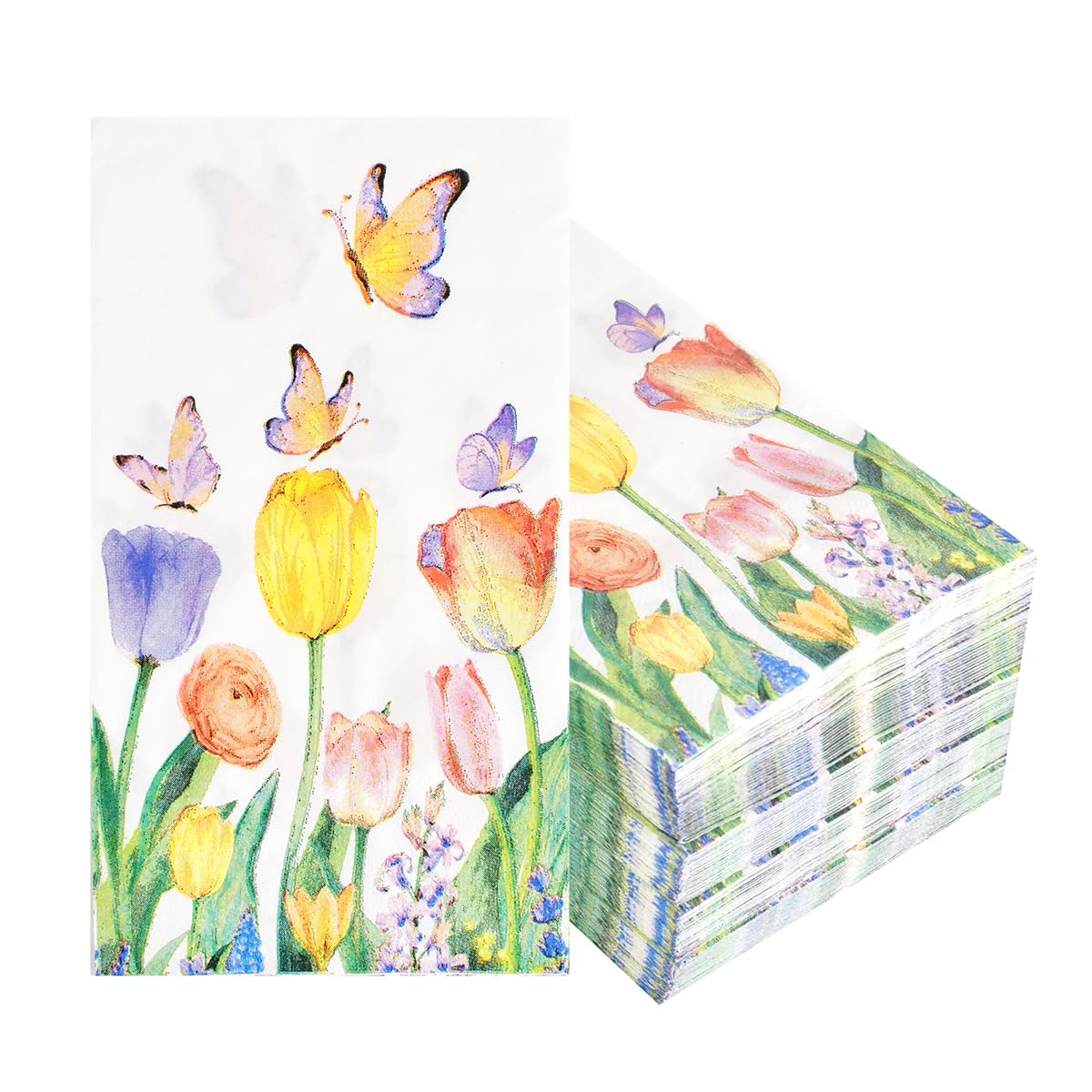 100Pcs Disposable Floral Paper Napkins Spring Tulip Guest Napkins Watercolor Flower Dinner Party Napkins Decorative Hand Towel for Bathroom Wedding|Kitchen & Dining