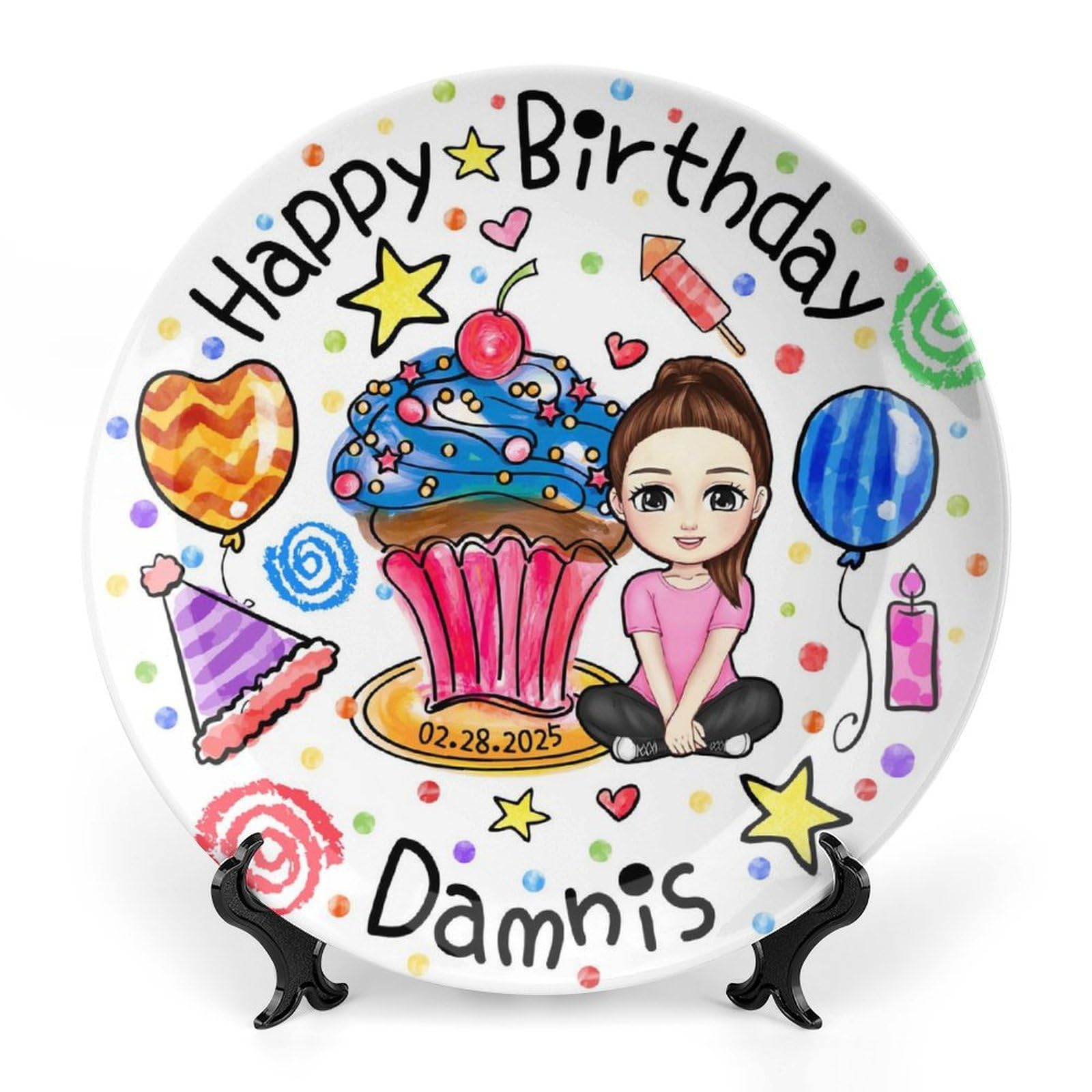 Personalized Ceramic Birthday Commemorative Plate,Customized Name and Time,Suitable for Living Room,Kitchen and Dining Room Exquisite Decorative Plate|Kitchen & Dining