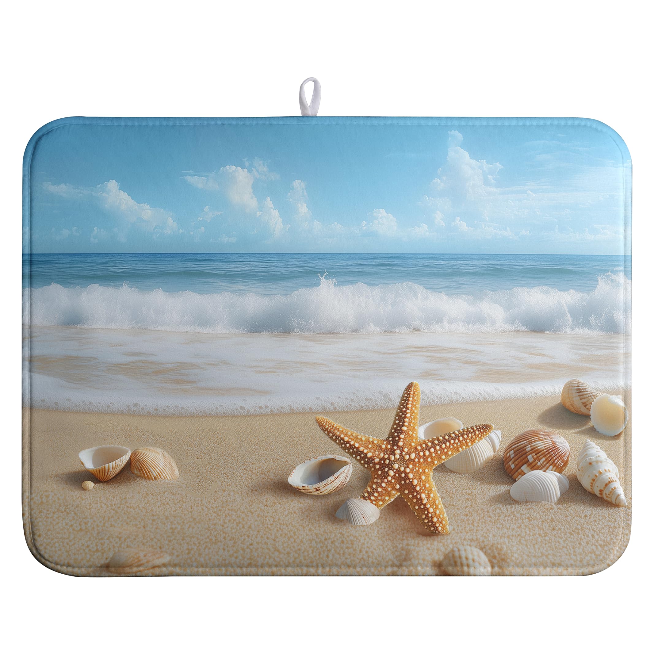 Summer Ocean Beach Blue Dish Drying Mat Sea Shell Starfish Large Kitchen Mat Dish Drying Pad Absorbent Dish Dryer Mat for Kitchen Countertops|Kitchen & Dining