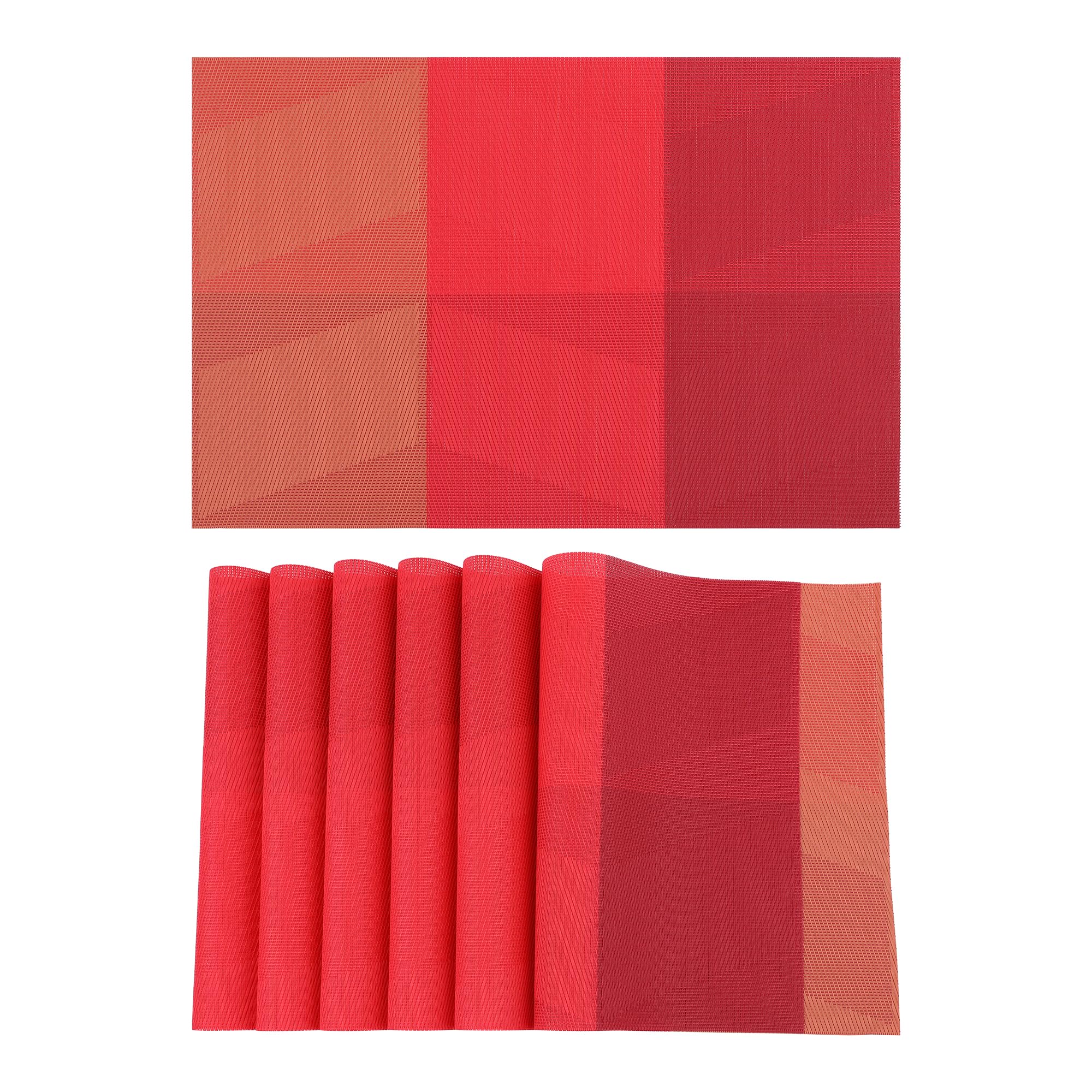 DRMHM Set of 6 PVC Placemats for Kitchen Dining Table Decor Heat-Resistant Table Placemats Wipeable Table Mat 18 * 12in Red|Kitchen & Dining