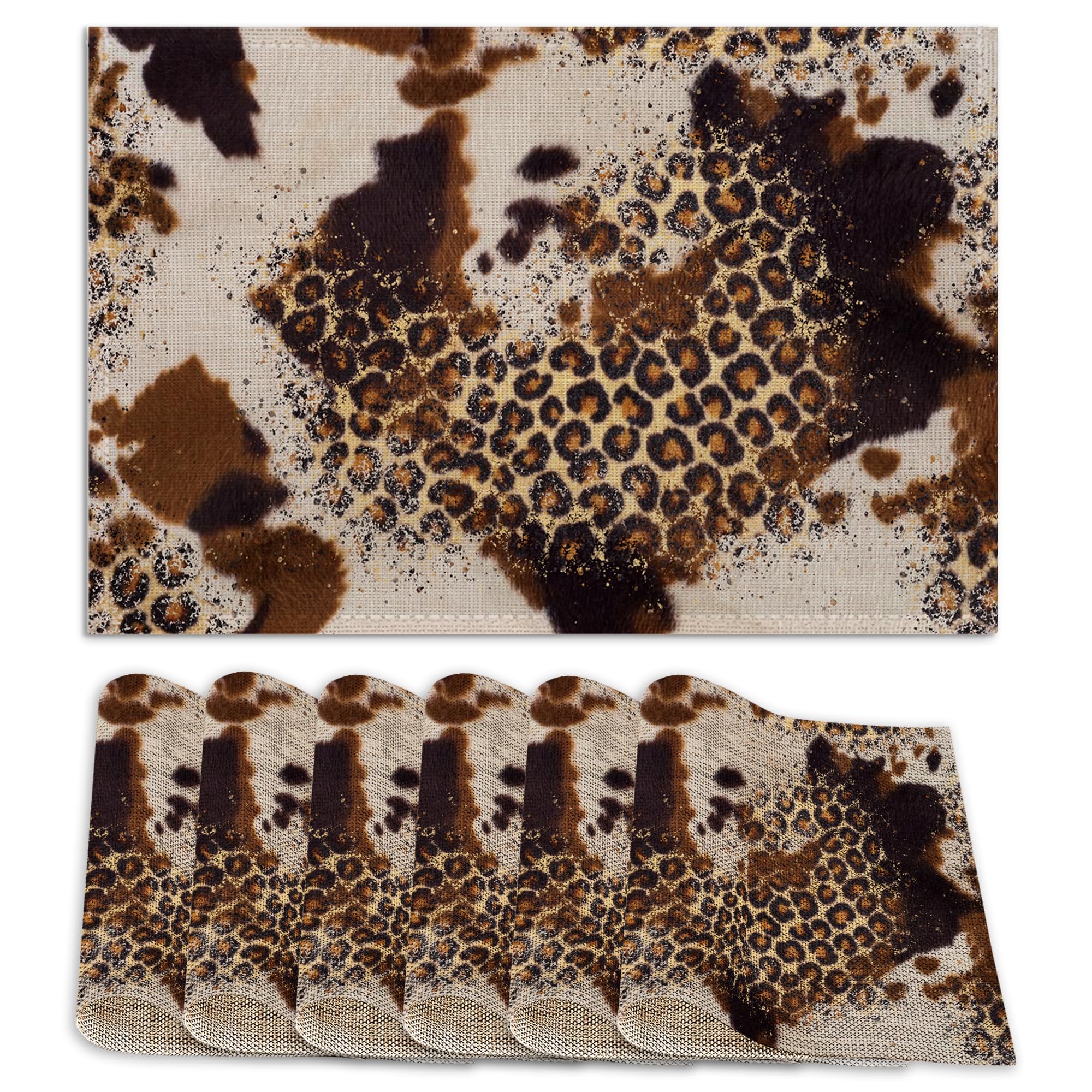 Cowhide with Glitter Leopard Print Place Mats Set of 6, Table Mats,Heat Insulation Non Slip Washable Dining Placemats for Wedding Holiday Party|Kitchen & Dining