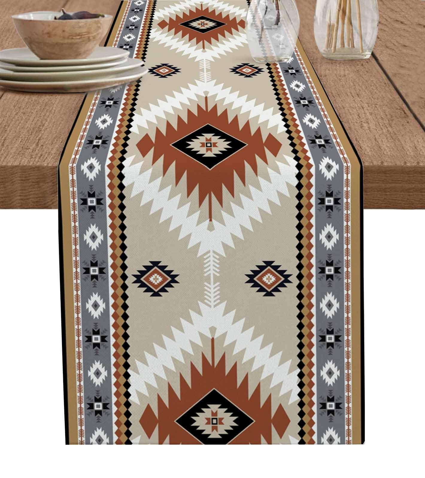 Table Runner Aztec Southwestern Ethnic Tribal Style Geometric Orange Khaki Table Runners Dresser Scarves Holiday Kitchen Dining Table Decoration for|Kitchen & Dining