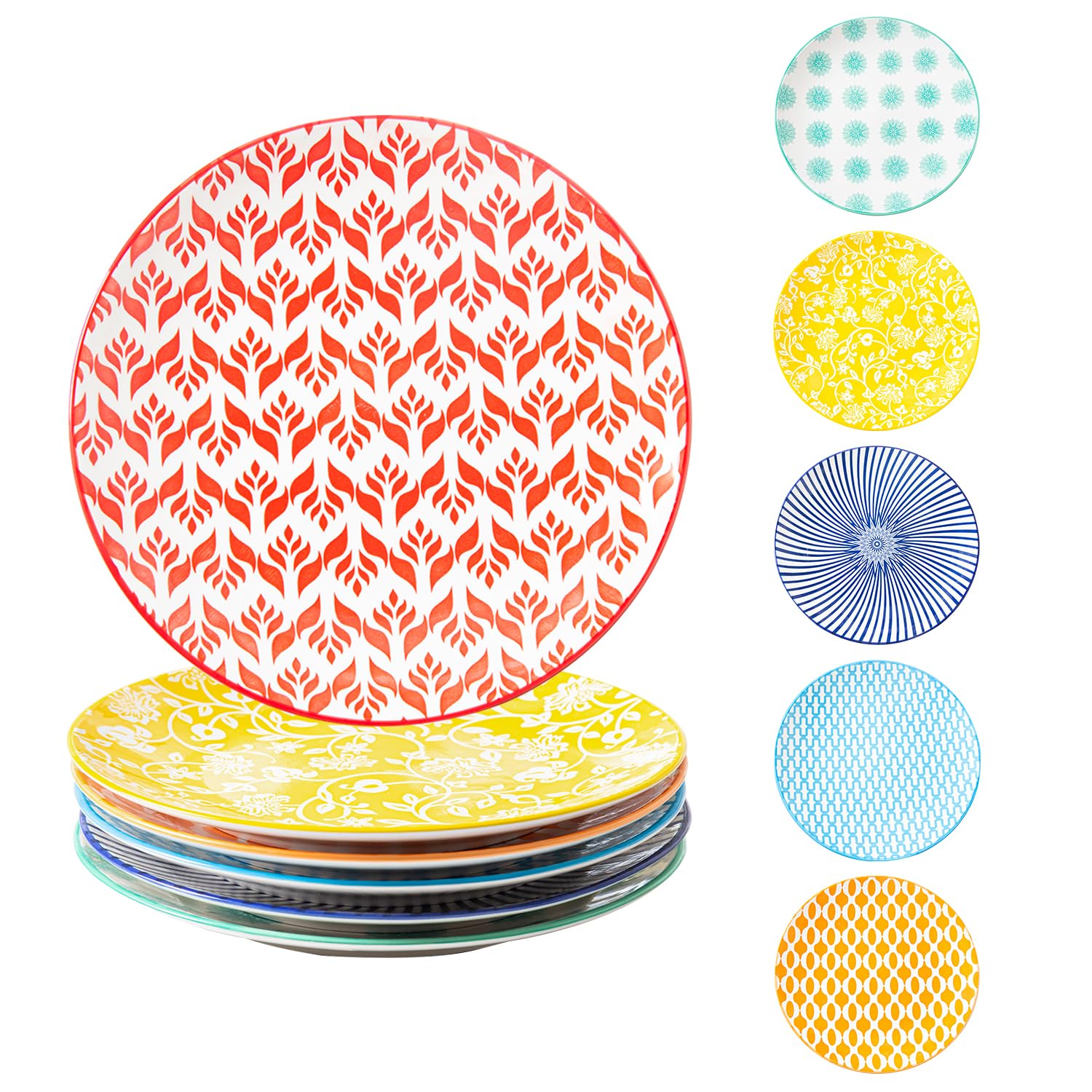 Gibsimi Ceramic Salad Plates Set - 8.5 Inch Round Porcelain Dinner Dishes, Scratch Resistant, Microwave Dishwasher Safe - for Sandwich Dessert Pasta|Kitchen & Dining