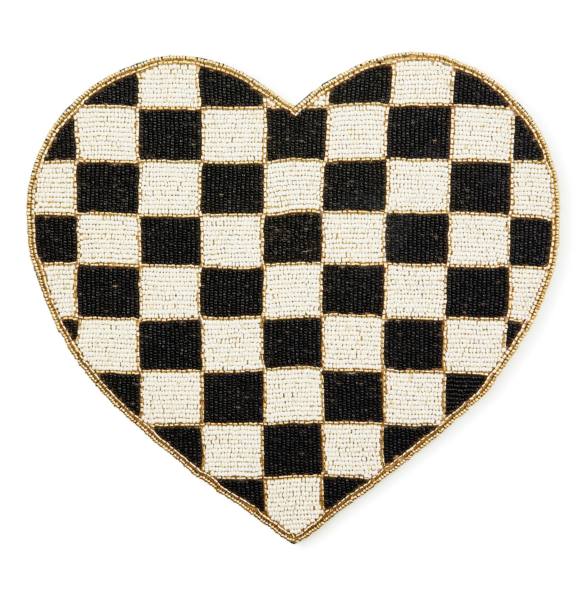 MACKENZIE-CHILDS Beaded Placemat, Indoor Table Mat, Black-and-White Check Heart Shaped|Kitchen & Dining