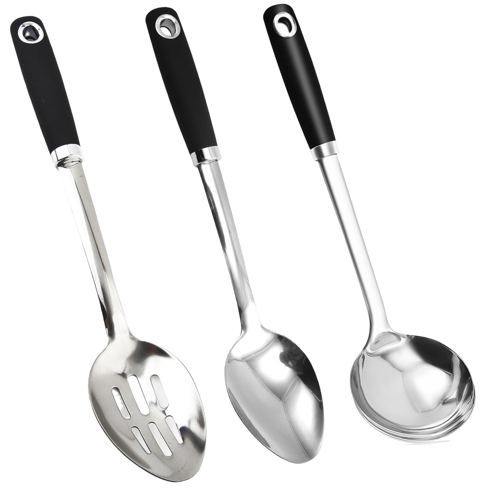 3-Piece Stainless Steel Cooking Utensils Set, Heavy Duty 18/0 14-in Large Serving Spoons Set, Slotted Spoon, Cooking Spoon & Soup Ladle, Kitchen|Kitchen & Dining