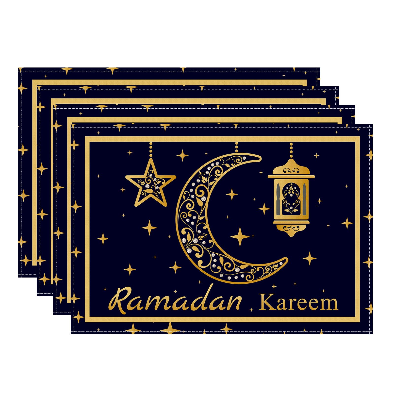 XCHI Black Golden Moon Stars Lantern Ramadan Kareem Placemats Set of 4 Table Mats for Party Home Kitchen Dining Table Decorations 12x18 Inch|Kitchen & Dining
