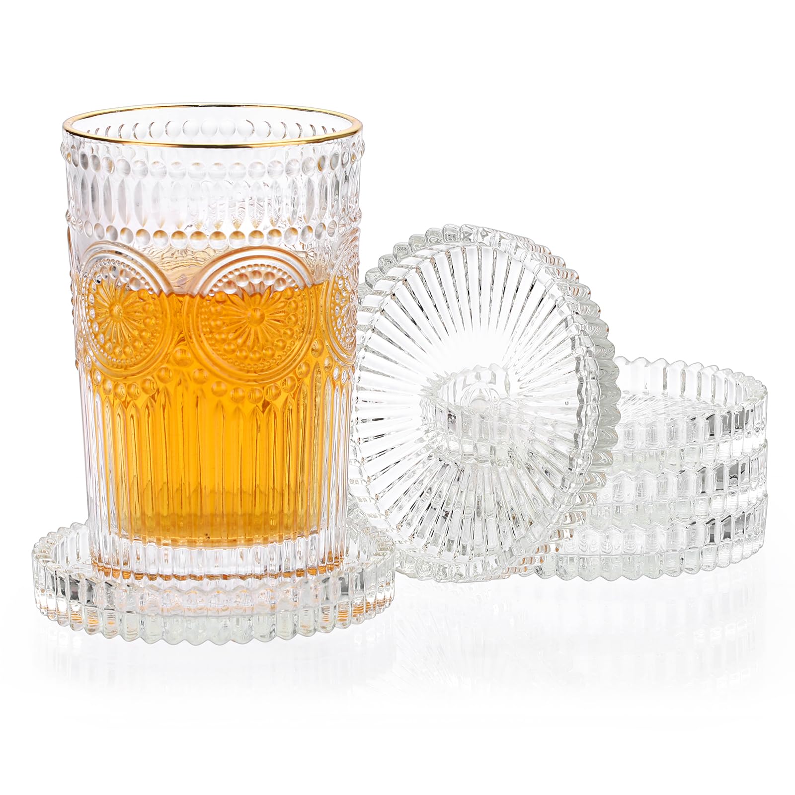 OGANAZI Modern Clear Coaster Set of 5- Glass Coasters for Drinks Crystal Coasters Round Cup Mat Coffee Table Decor for Office, Kitchen, Bar, Dining|Kitchen & Dining